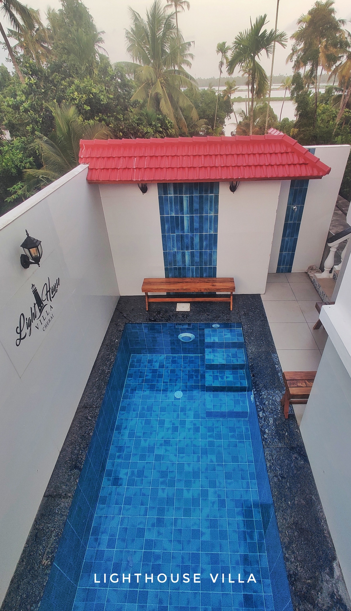 Wolltest du schon immer mal zwischen dem Arabischen Meer und den Backwaters übernachten? Lighthouse Villa, eine private Poolvilla mit 4 Schlafzimmern mit Blick auf das Arabische Meer vorne und ruhige Backwaters hinten, man konnte den Sonnenaufgang und Sonnenuntergang von jeder Ecke dieser Boutique-Villa in Cherai, Kochi, Indien genießen.