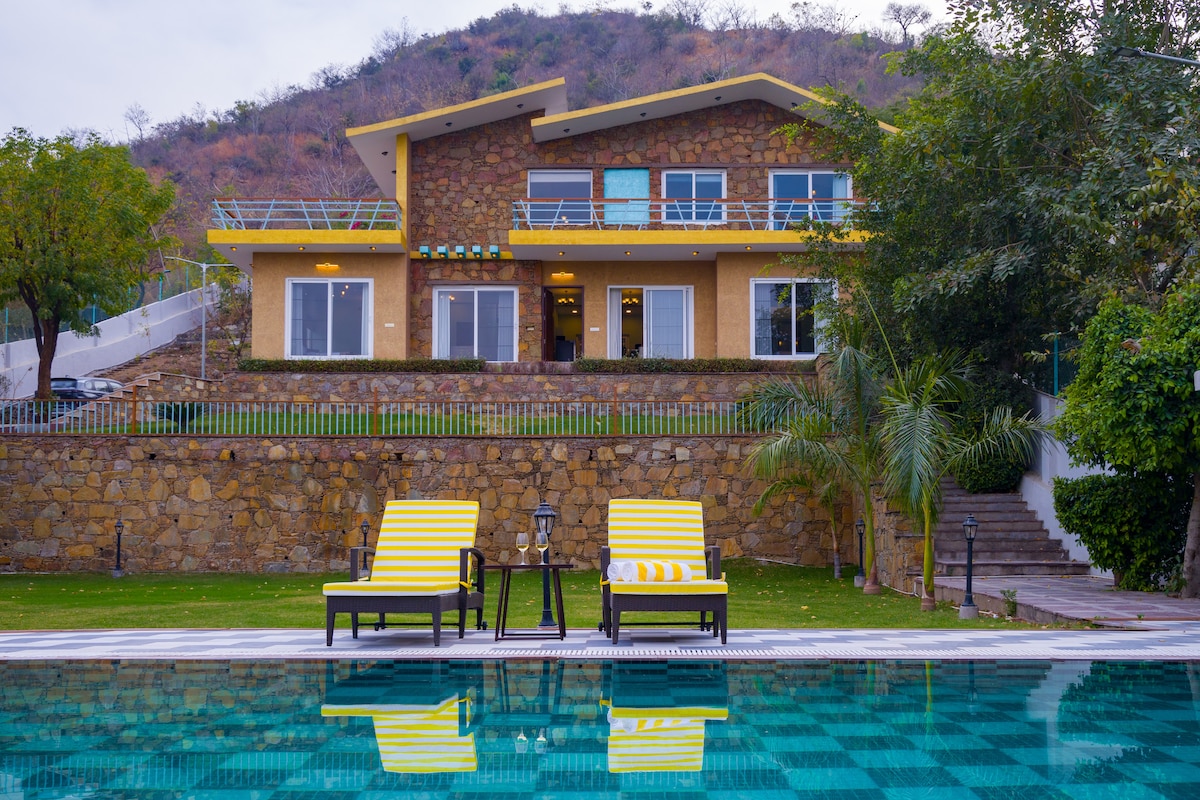 6 BHK Luxusvilla mit Pool + Rasen + Aussicht in der Nähe von Udaipur