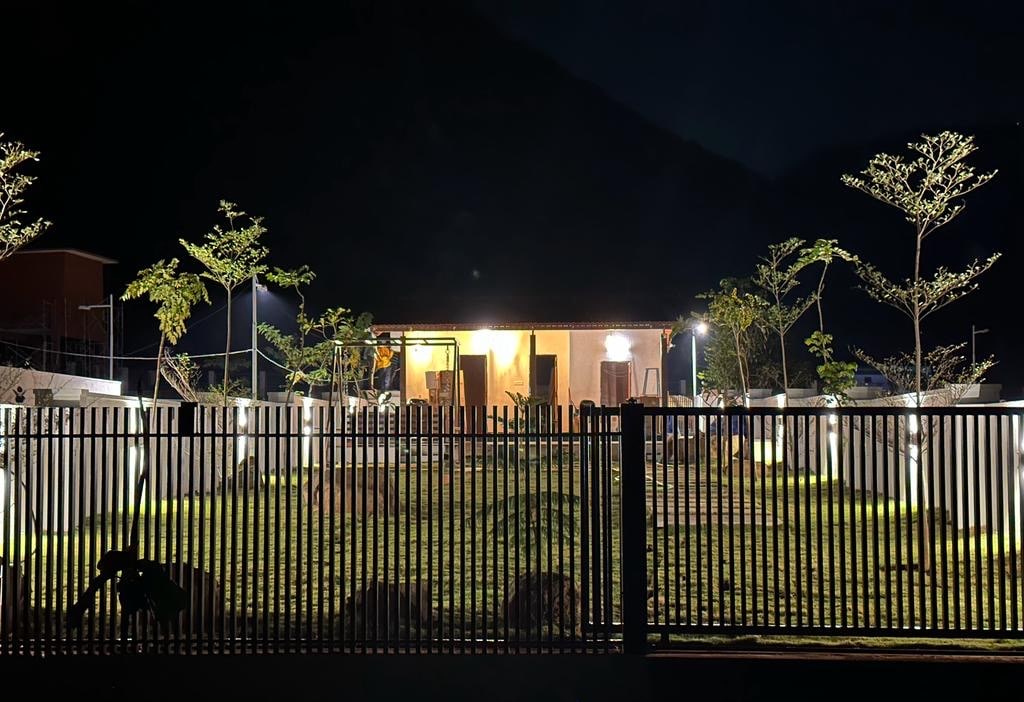 Ein perfektes Ferienhaus inmitten einer Mango-Farm für Wochenendausflüge. Komm an diesem unvergleichlichen Rückzugsort wieder in Einklang mit der Natur. Plane deinen Urlaub/Aufenthalt mit High-Speed-Netz und allen Annehmlichkeiten inmitten der Natur. Schlafzimmer mit Holzböden im US-Stil, Heimkino mit Netflix und allen OTT für Film-Zeit. Voll ausgestattete Küche und Außenkamin mit Terrasse für Sternenbeobachtung und 4-Personen-Zelt auf Anfrage verfügbar. Einzigartige Erfahrung, deinen eigenen Fisch während der Saison zu fangen und zu grillen, um das frischeste Fischfleisch aller Zeiten zu probieren.