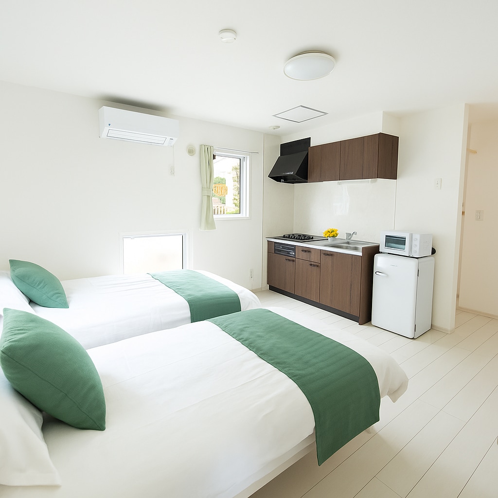 Der erste Stock ist mit einer Küche, einem Esszimmer und einem Wohnzimmer ausgestattet. Du kannst Essen genießen und mit deinen Freunden oder deiner Familie am Tisch plaudern. Du kannst im ersten Stock schlafen und es gibt „FUTON“ für die Anzahl der Personen. Das Ferienhaus verfügt über Küche, Gasherd, Kühlschrank, Reiskocher, Mikrowelle, Toaster, Utensilien, Geschirr, Spülmittel, Schwamm, Staubbehälter, Toilette, Waschmaschine für Kleidung, Luftreiniger, Feueralarme, FUTON, TV, WLAN und Parkplatz.