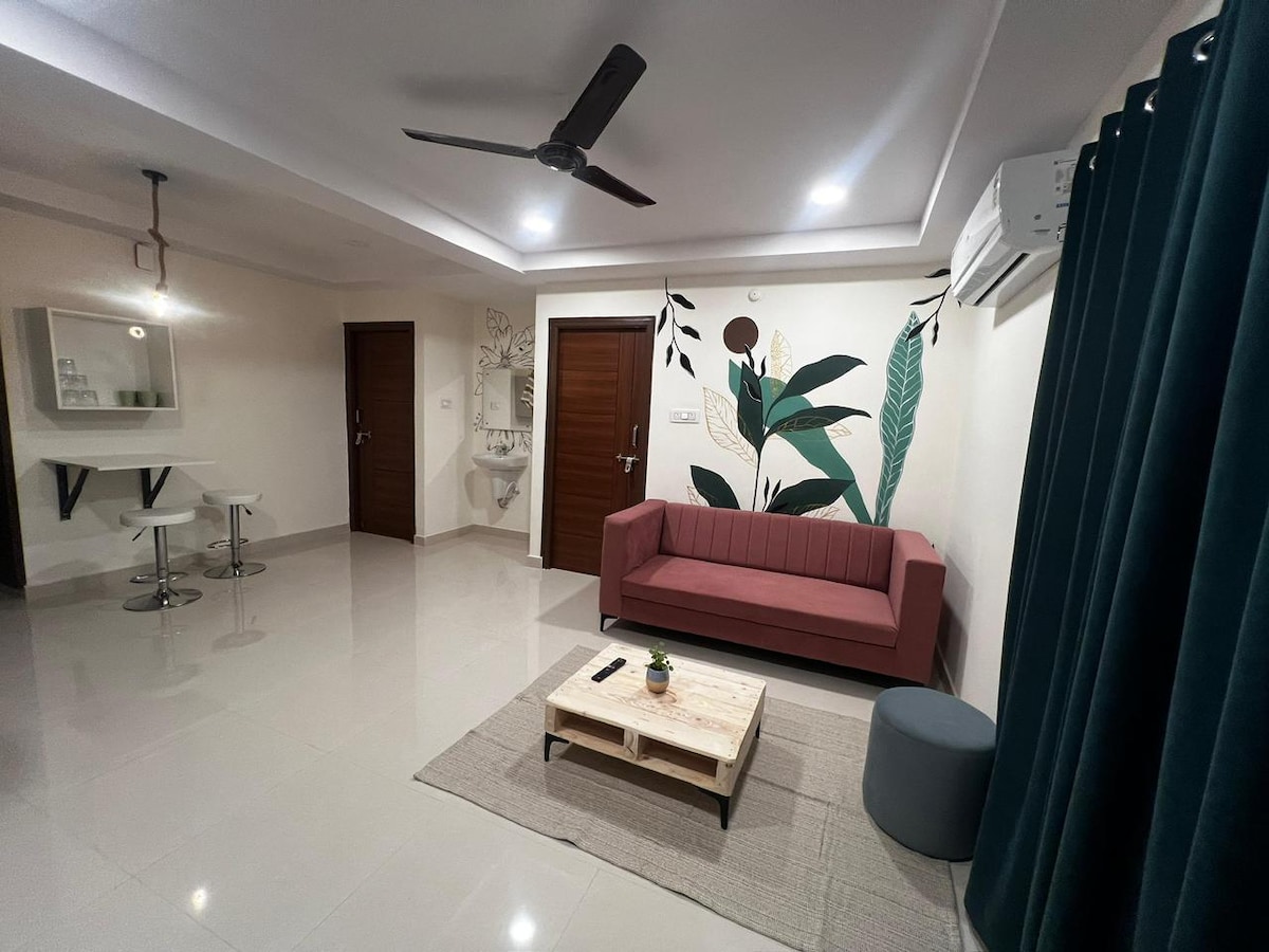 Entspanne dich bei diesem einzigartigen und ruhigen Kurzurlaub. Perfekt für Reisende und Paare, bietet dieses gemütliche Studio einen ruhigen Rückzugsort mit modernen Annehmlichkeiten, die für ultimativen Komfort während deines Aufenthalts und in der Nähe des US-Konsulats, Wipro Circle, Amazon, Q City, Finanzviertel, Hitech City, AIG Krankenhaus, AMB Mall, Knowledge City und DLF konzipiert sind Mach es dir in diesem einzigartigen und ruhigen Rückzugsort mit Balkon gemütlich. Dieser einzigartige Ort hat einen ganz eigenen Stil.