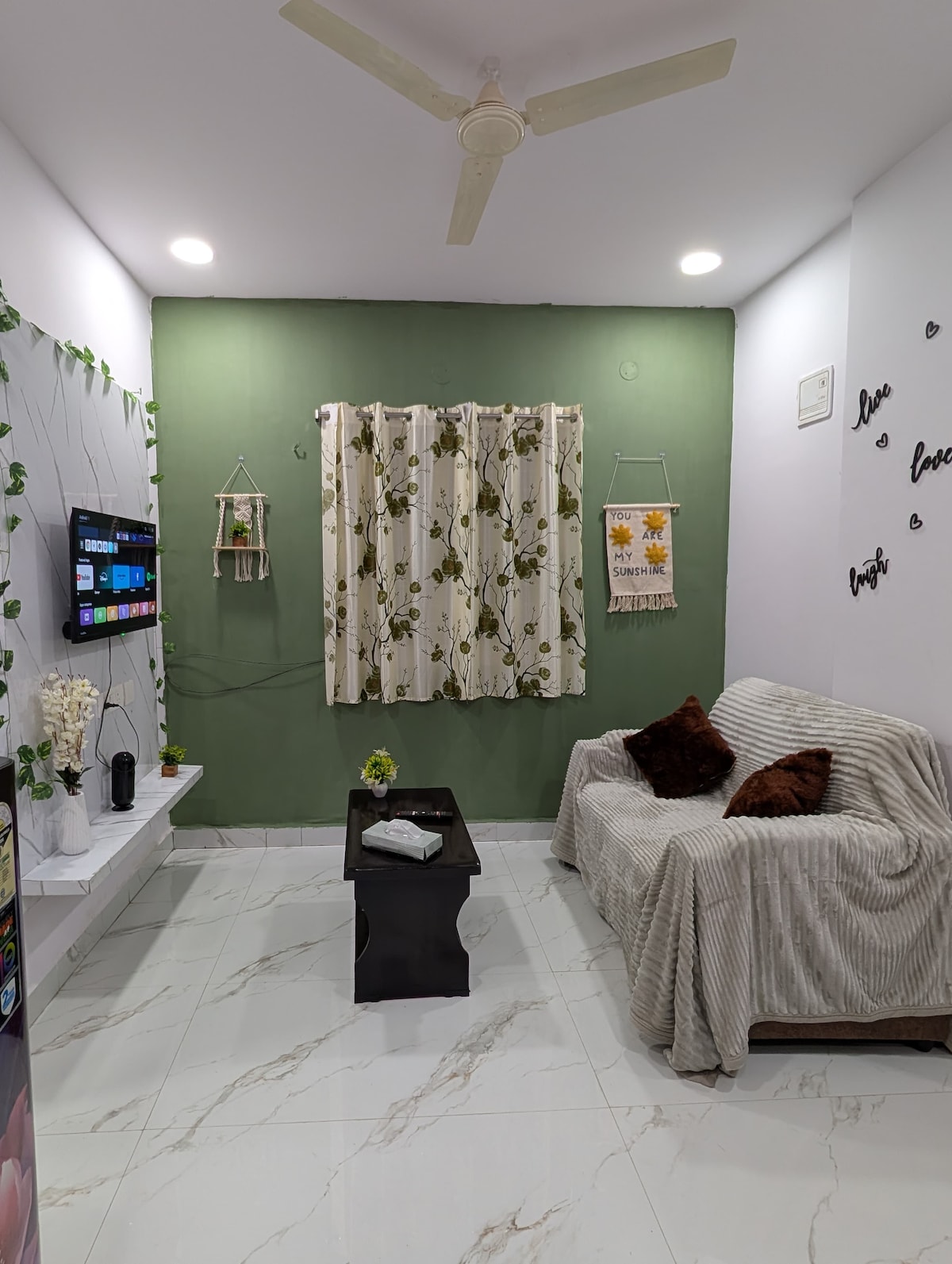 Welcome to our cozy 1-bedroom apartment, nestled near the enchanting Botanical Garden in Hyderabad. This space is perfect for solo travellers, working professionals, couples or small families looking for a comfortable retreat. Equipped with all the modern conveniences you need for a seamless stay, including fast WiFi, a Smart TV, a washing machine, a fridge, a kettle, and a water purifier. Relax in the comfortable bedroom, unwind in the living area, or prepare a home-cooked meal in the kitchen.