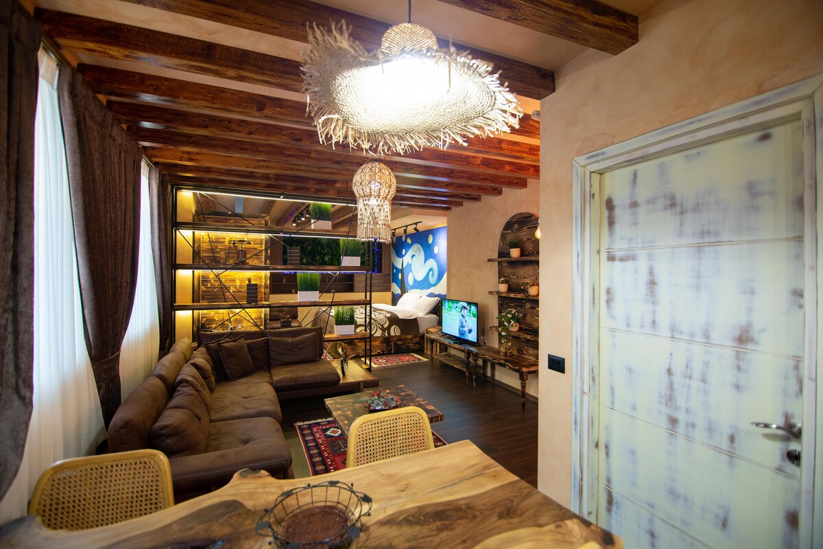 Perfekt im Herzen der Stadt Korca gelegen, schönes, gut eingerichtetes Loft, 2 bis 5 Personen. Ruhig, gemütlich, Klimaanlage und WLAN, neben dem Hauptboulevard Republika.