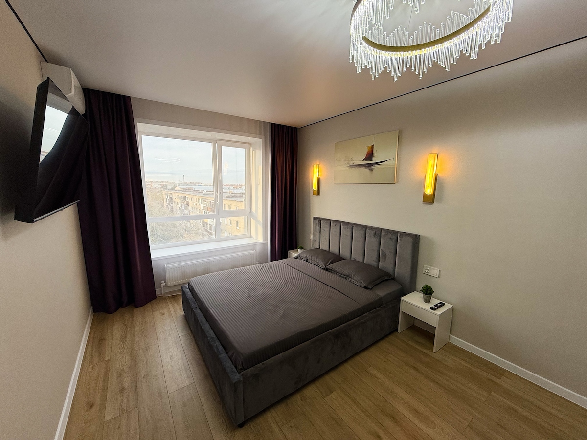 Schon an der Türschwelle unserer Wohnung spürt man die Atmosphäre von Behaglichkeit und Schönheit. Hier ist alles bis ins kleinste Detail durchdacht: komfortable Möbel, eine gemütliche Atmosphäre und alles, was man für seinen Aufenthalt braucht. Eine großartige Lage mit Supermärkten, vielen Cafés, einem Park und vielen Geschäften in der Nähe. Ein neues Gebäude, eine atemberaubende Aussicht vom Fenster im 8. Stock, alles für deinen Komfort! Ich werde mich freuen, dich bei mir zu empfangen!