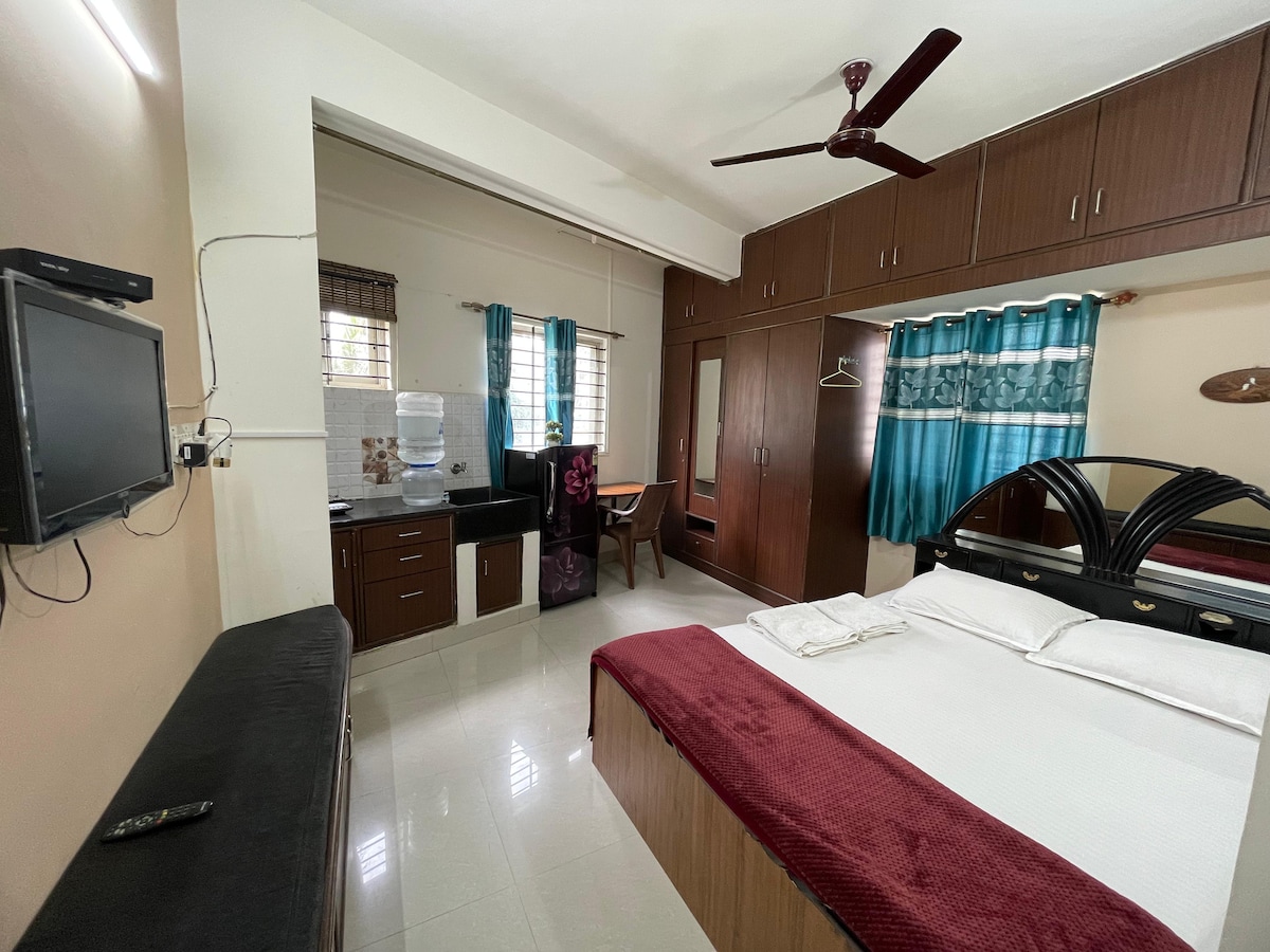 Das private 1 BHK verfügt über ein Schlafzimmer und ein Wohnzimmer mit einer privaten Küche und einem Waschraum. Es ist eine Nicht-Ac-Wohnung. Die Wohnung verfügt über WLAN und einen Arbeitstisch, perfekt für Berufstätige von zu Hause aus. Diese Unterkunft ist perfekt für Gäste, die aus medizinischen Gründen kommen. Wir sind ein super enthusiastisches Team, das 40 Einheiten von 1 BHK & Studio Serviced Apartments verwaltet. Wir befinden uns in South Bangalore, abseits der Bannerghatta Road. Du wirst von unserem super reaktionsschnellen Team begeistert sein.