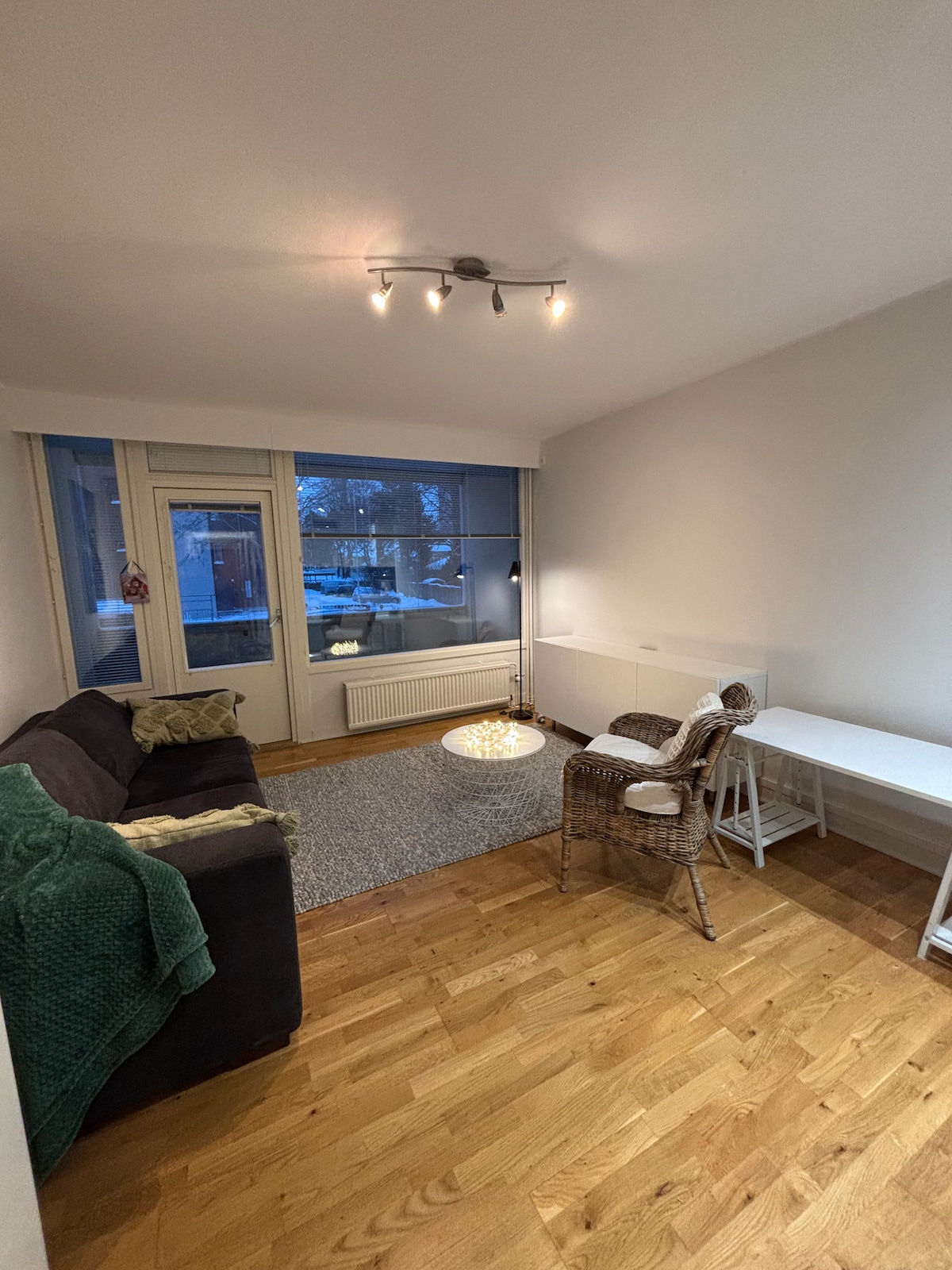 Ich bevorzuge längere Aufenthalte, frage nach einem Angebot, wenn du für drei Wochen oder länger mietest. Eckwohnung im Erdgeschoss mit eigenem Eingang. Großes und geräumiges Wohnzimmer - Küchenbereich. Doppelbett 140 cm. Möglichkeit von Zustellbetten gegen eine andere Gebühr. Haustiere erlaubt. Komplett renoviert (und einige kleinere Arbeiten sind noch im Gange). 1 km zur Stadt 200 m Einkaufsgeschäft 200 m Pub 160 m Restaurant 250 m Strand-/Bootsanlegestelle 200 m Bushaltestelle 500 m Bahnhof 1,3 km Krankenhaus 2,9 km Vellamo, Harbour Arena 3,3 km Maretarium