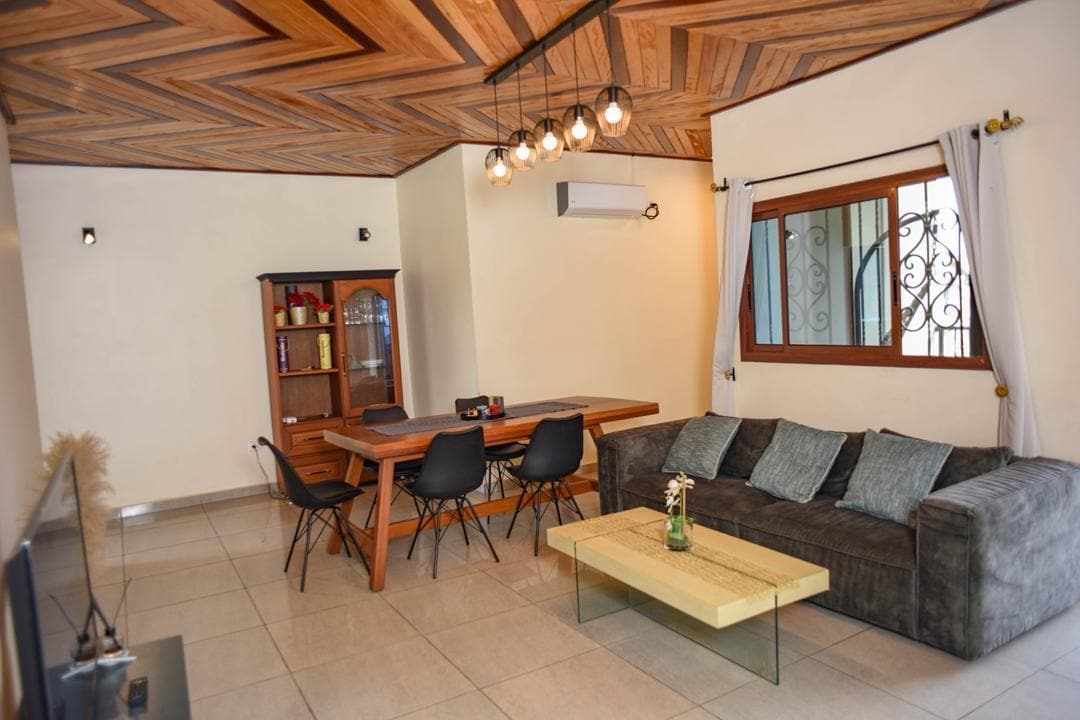 Willkommen in der Familienvilla in Kribi, einem Paradies an der kamerunischen Küste. Genießen Sie 3 Schlafzimmer, 2 Badezimmer, ein Wohnzimmer, eine ausgestattete Küche und eine Terrasse. 10 Min. von den Lobe Falls, 7 Min. vom Strand und dem Zentrum entfernt. Stromerzeuger verfügbar (Diesel auf Ladung). Reinigungsgebühr inklusive, aber danke, dass Sie die Ausrüstung respektieren und das Geschirr spülen. Bestandsaufnahme durch die Haushälterin, Schäden in Rechnung gestellt. Check-in: 15:00 - 22:00 Uhr MAX | Check-out: 13:00 Uhr Zahlung nur über Plattform.