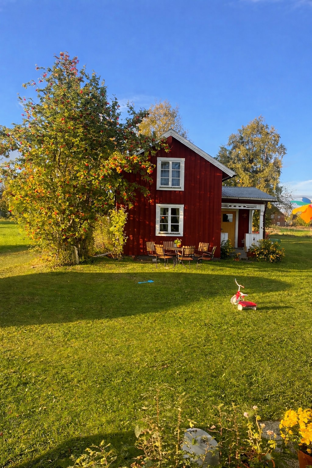 Willkommen in unserem neu renovierten und familienfreundlichen Sommerhaus auf unserem Bauernhof in Offerdal. Hier wohnst du ruhig und naturnah mit Bergen, Wäldern und Seen in der Nähe – perfekt für Entspannung und Ausflüge. Auf dem Bauernhof gibt es Kühe, Pferde und Katzen, die in der Regel von Kindern und Erwachsenen geschätzt werden. Im Sommer gibt es gemütliche Cafés, die zu Fuß oder mit dem Fahrrad erreichbar sind, sowie schöne Badebereiche, Angelgewässer und Wälder, die reich an Beeren und Pilzen sind. Bettdecken und Kissen sind verfügbar. Bettwäsche ist inbegriffen oder kann für 60 SEK/Set gemietet werden.