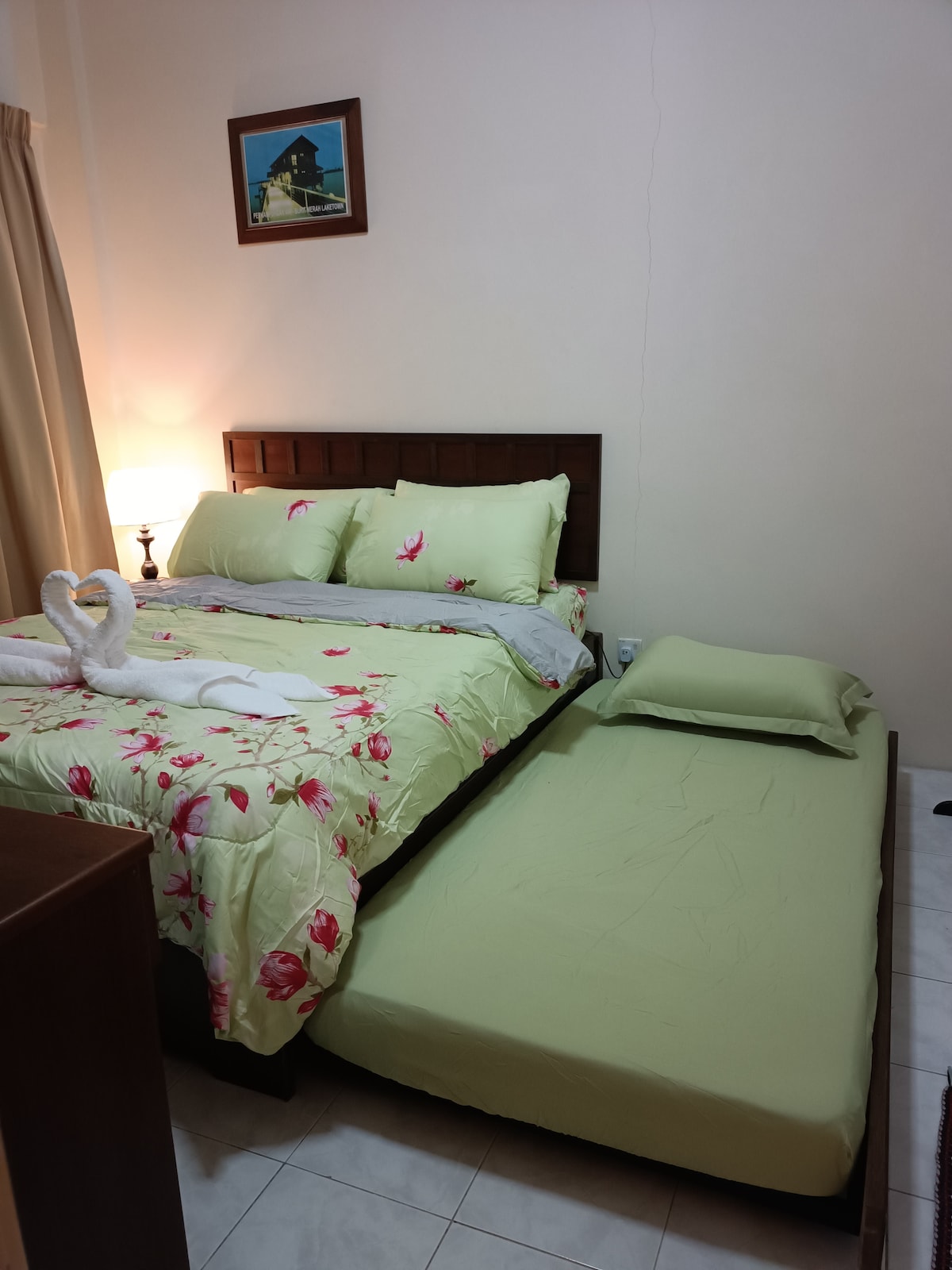 Gemütlicher Raum mit grundlegender Notwendigkeit zur Verfügung gestellt, der Ort ist strategisch ein strategischer Ort in Taiping, Kamunting und Aulong. Gegenüber dem Ort befindet sich Tesco und das Taiping Sentral Mall. Unterhalb der Unterkunft befindet sich ein Dobby, ein Food-Court und ein großes Pub und ein Café, um während der Nacht zu entspannen. Die Unterkunft verfügt über einen Gemeinschaftspool und einen Fitnessraum sowie einen Parkplatz. Unsere Unterkunft befindet sich neben einer Hauptstraße und Bahn, sodass es gelegentlich Geräusche von vorbeifahrenden Fahrzeugen geben kann. Check-in-Zeit: 15:00 Uhr. Check-out Zeit : vor 12:00 Uhr.