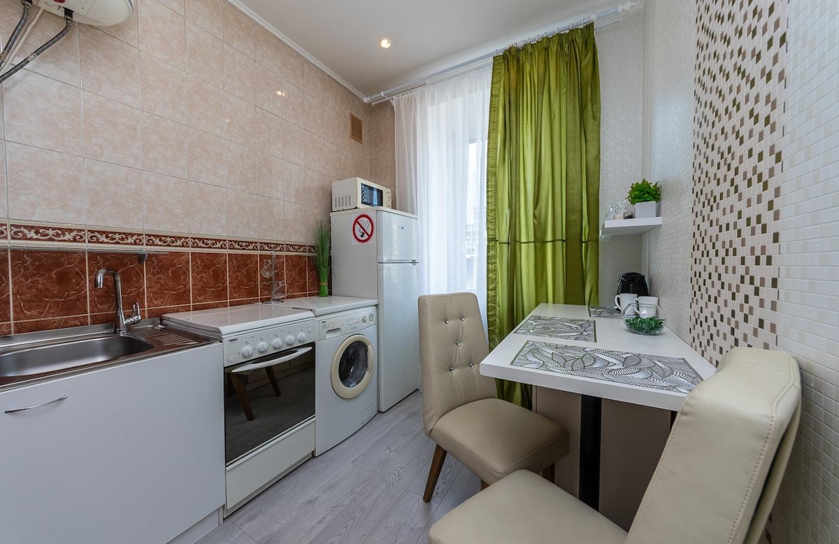 Komfortabel,stilvoll, funktional. Teure Premium-Sigment-Möbel ( Bett mit orthopädischem Sofa und Oberseite)U-Bahn in der Nähe des Hauses 150 Meter auf der anderen Straßenseite Prospect Einkaufszentrum. Sicherheitssystem und Video sind sicher für Gäste. Elektronische Station zum Laden von Elektrofahrzeugen im Innenhof des Hauses