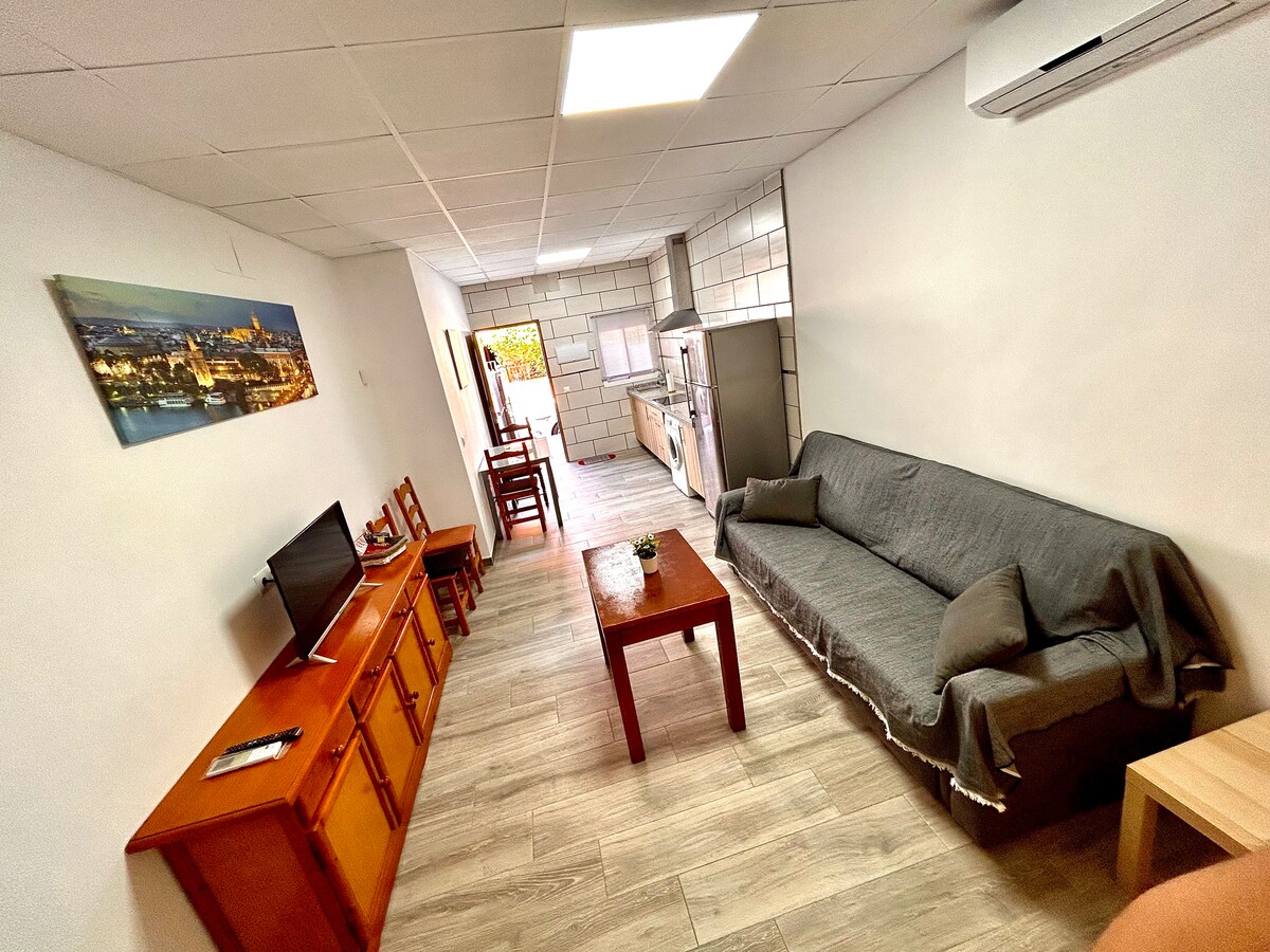 Neue Wohnung mit exquisiter Dekoration, in der du dich wie zuhause fühlst. Sie hat alles, was du brauchst, und mehr, um einen großartigen Aufenthalt zu haben. Sie befindet sich in einem kleinen Familienviertel, wo der Rest nach einem intensiven Tag in der Stadt garantiert ist. Du kannst dich auch beim Frühstück draußen entspannen, wo es einen Tisch und Stühle gibt, da das Wetter in Sevilla es zulässt. Das Parken ist auf derselben Straße kostenlos.