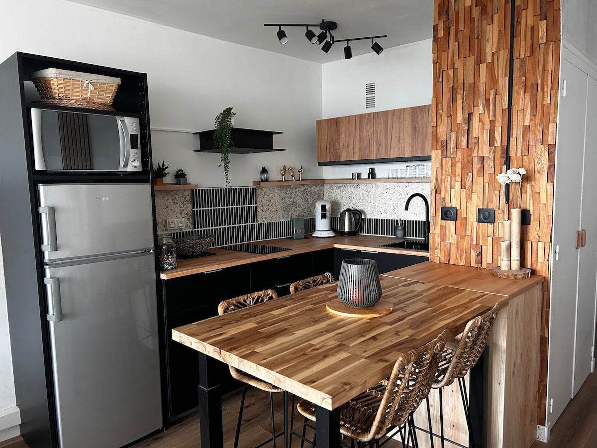 Wir heißen Sie herzlich willkommen in unserem komplett renovierten Studio mit Meerblick, das Platz für 2 Reisende bietet. Im Herzen von La Baule gelegen, haben Sie alle Annehmlichkeiten zu Fuß erreichbar (Av De Gaulle und kostenloser Sommer-Shuttle 500 m, Markt im Zentrum und Bahnhof 1,1 km, Strand davor). Ruhig, in einem historischen Gebäude, im 5. Stock mit Aufzug, genießen Sie den Komfort, der Ihnen zur Verfügung steht, sowie den Balkon und den atemberaubenden Blick auf das Meer!