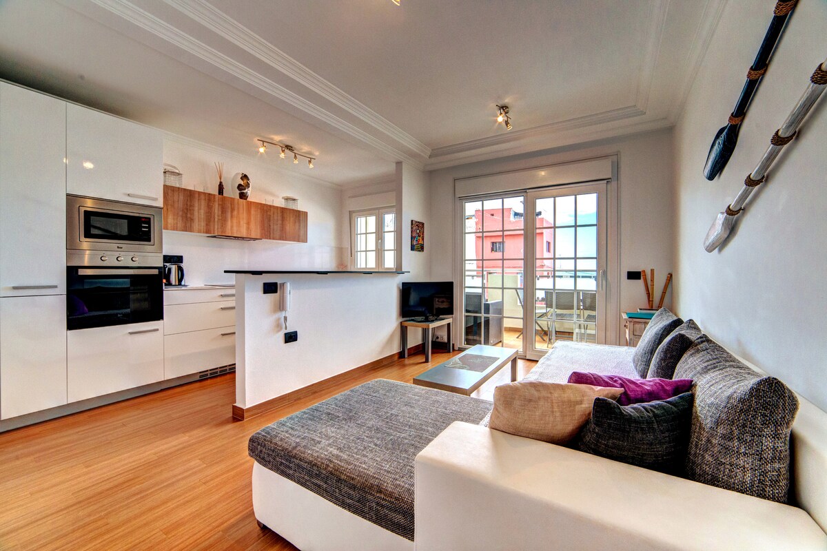 Willkommen zu deinem perfekten Rückzugsort im Herzen von La Caleta in der Nähe des Ozeans. Diese helle und komfortable Wohnung bietet einen spektakulären Meerblick und eine ruhige Atmosphäre. Ideal für Paare, Alleinreisende oder kleine Familien. Nur 30 Meter von der Strandpromenade entfernt, befindet sich die Wohnung in einer der schönsten Gegenden Teneriffas. Rundherum findest du tolle Restaurants, gemütliche Cafés und lokale Geschäfte. Ein Supermarkt ist auch nur zu Fuß zu erreichen. Die Gegend ist ruhig, voller kanarischem Charme.
