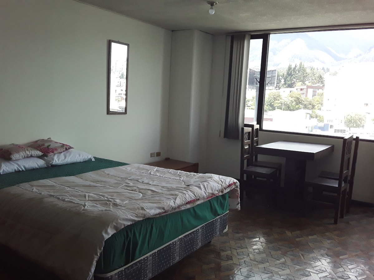 Moderno loft piso 21, edificio nuevo con generador de luz autónomo, ideal para viaje de negocios o para una ocasión especial, vista única de la ciudad. Ubicación privilegiada en el centro norte de Quito junto al parque La Carolina, además a tan solo unos pasos encontrarás centros comerciales e instituciones financieras. El servicio incluye parqueadero, wifi, cine en casa, tina de baño, agua caliente, lavadora/secadora comunal, elementos de higiene, gimnasio y piscina.