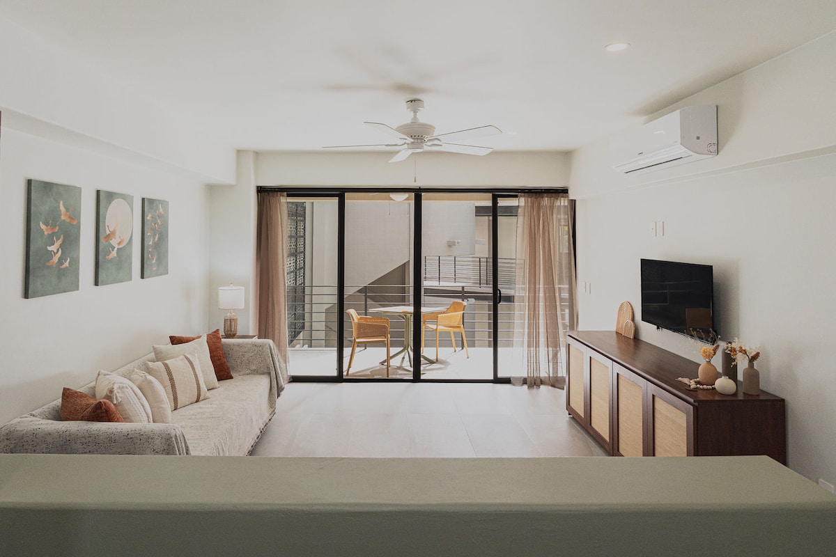 Un departamento fresco y moderno para unas vacaciones inolvidables con la familia o para trabajar en smart working. Decorado con detalles preciosos que te harán sentir como en tu propia casa. Equipado y con servicios de alta calidad: internet 200mbps, lavadora/secadora, smart tv, agua caliente y aire acondicionado. Se ubica a 2 minutos caminando de la playa Santa Cruz y cerca de restaurantes, tiendas y mercados. Además cuenta con un rooftop común desde donde se alcanza a ver el océano.
