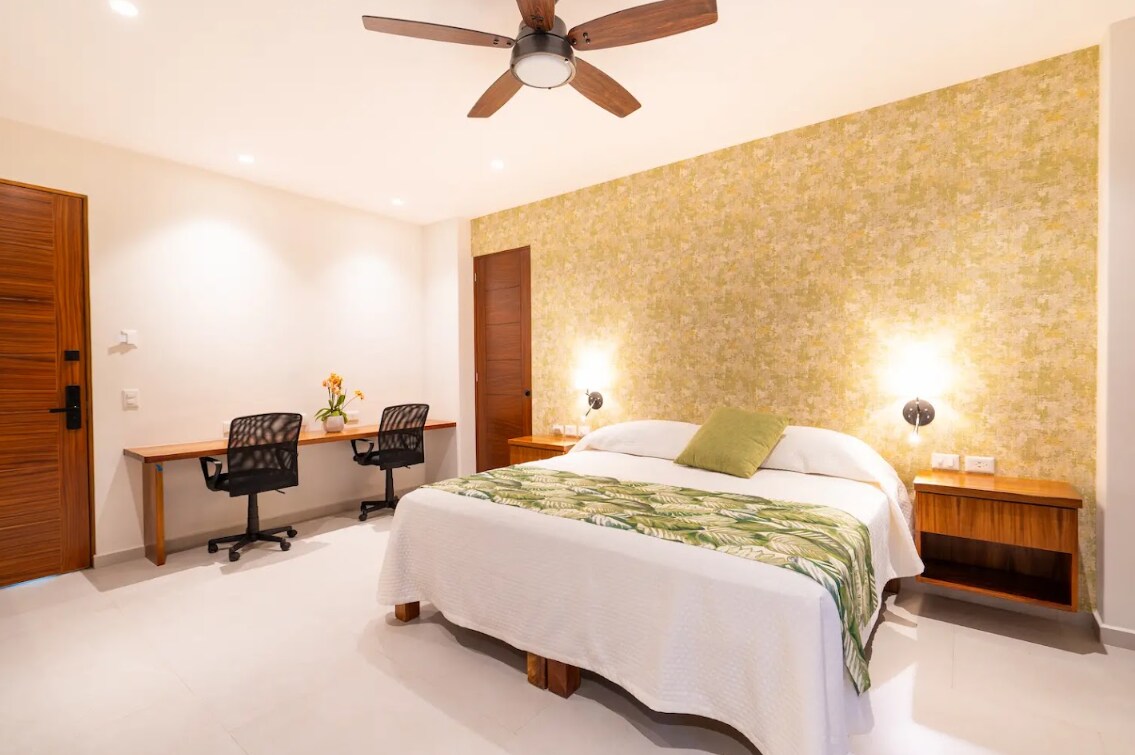 Charmantes Studio mit einem Queensize-Bett in einem Boutique-Hotel (nur 8 Eigentumswohnungen) im begehrtesten Viertel von Bucerias. Gehe 2 Blocks zum Strand, kühle dich im BEHEIZTEN Pool ab oder genieße den Sonnenuntergang von der Dachterrasse palapa. Wenn du im Herzen der Stadt bist, kannst du die besten Restaurants, Cafés und Kunstgalerien, die diese malerische Strandstadt zu bieten hat, zu Fuß erreichen. Egal, ob du für eine Woche oder einen Monat bleibst, es ist perfekt, um das bestgehütete Geheimnis der Bucht zu erleben.