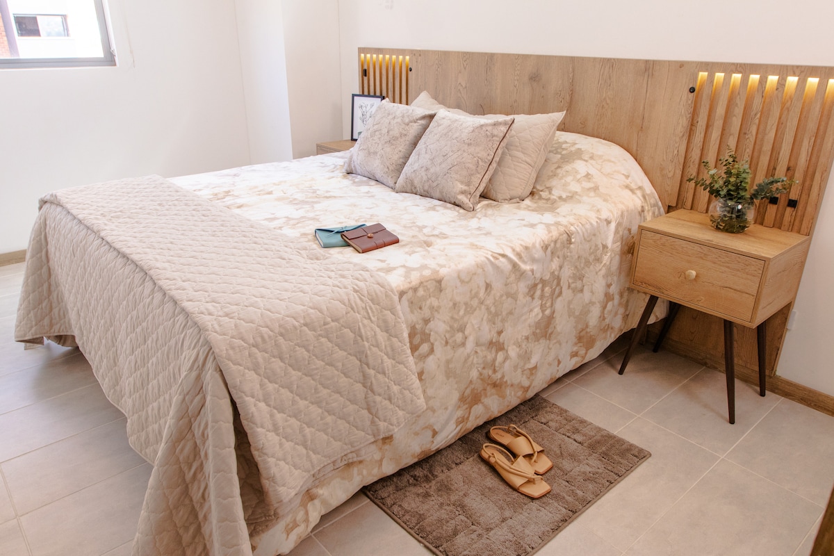 Moderne und gemütliche Wohnung, strategisch günstig in der Nähe der Metrostation, der Hauptstraßen und einer großen Auswahl an Geschäften und Restaurants gelegen. Entworfen, um ein komfortables und authentisches Erlebnis zu bieten, mit einem sorgfältigen handwerklichen Dekor, das den Gast mit dem kolumbianischen kulturellen Reichtum verbindet. Ideal für kurze oder lange Aufenthalte, mit allen Annehmlichkeiten, die für einen angenehmen Aufenthalt erforderlich sind.