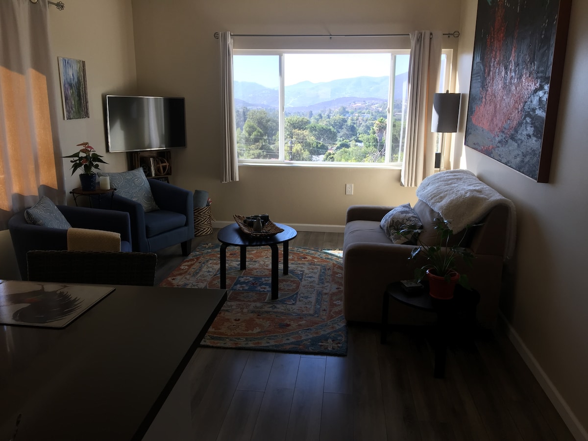 Genieße den Sonnenauf- und -untergang von dieser Panorama-Casita auf einem Hügel. Genieße einen charmanten Kurzurlaub mit atemberaubendem Blick auf die Berge und Täler. Genieße Erfrischungen auf der privaten Terrasse und bestaune dabei die Palmen und endlosen Hügel. Das Hotel liegt 15 Meilen vom Strand und 20 Minuten von vielen wichtigen Sehenswürdigkeiten in San Diego entfernt. Bitte beachte: Wir haben derzeit ein Renovierungsprojekt im Freien hinter der Casita. Es kann Tage während deines Aufenthalts geben, an denen Arbeiten im Freien durchgeführt werden.