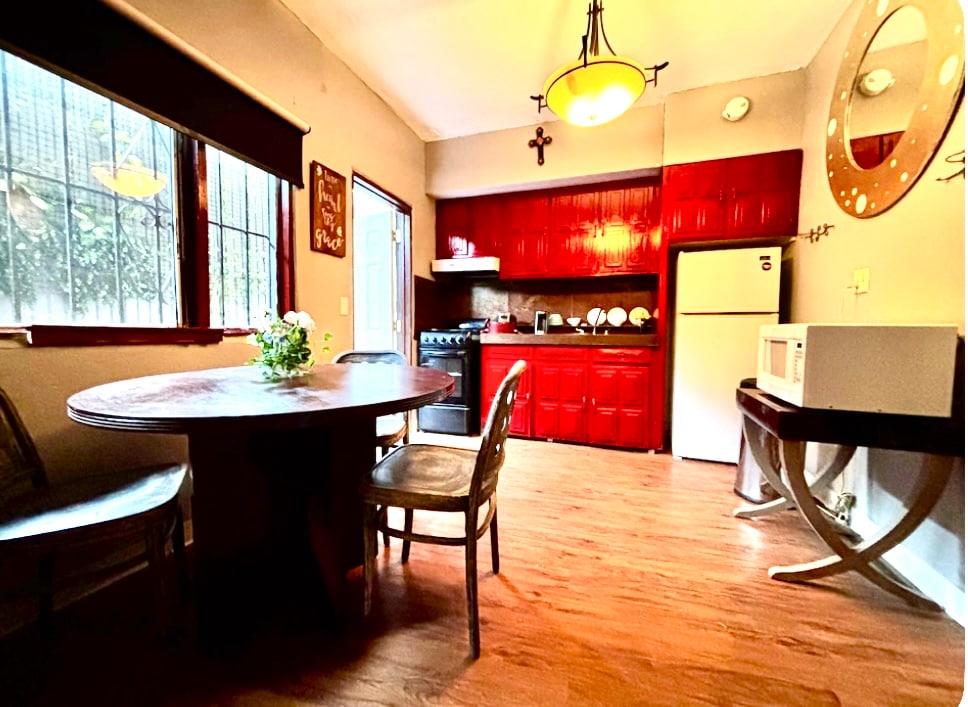 unsere Boutique Casita verfügt über schöne große Gärten, riesige Bäume und 3 Sitzbereiche im Freien, das Haus hat ein ländliches Gefühl, aber die Einrichtung der Casita ist alles modern und frisch, die Küche beherbergt einen Herd und einen Kühlschrank, die Casita bietet Platz für bis zu 4 Personen, 2 im Haupt-Queenbett und 2 im Küchenbereich im Tagesbett, das eine obere untere Matratze hat, wie auf den Bildern gesehen, der Zugang von der Straße ist flach, kein Stufenzugang bis zum Haus , die Terrasse verfügt über Innenparkplätze.