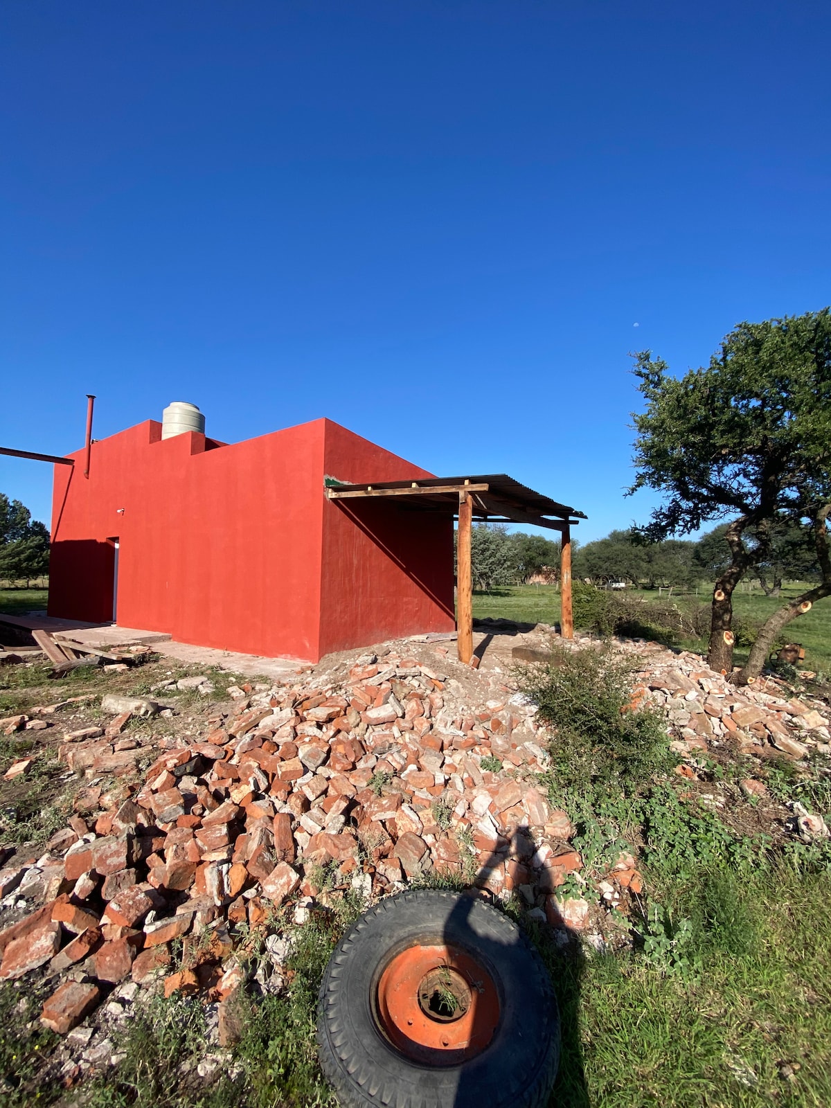 Casa de campo moderna y confortable en una hectárea de campo con vistas excepcionales a los bosques de calden. Situada a sólo 15 minutos de Santa Rosa y a 5 del autódromo, es ideal para un fin de semana de relax o para hacer etapa en el camino hacia el sur. Seguridad y tranquilidad totales. Dispone de una cama doble, una cama marinera y un sofá cama doble. Cocina moderna totalmente equipada y parrilla cubierta. Dos ambientes muy espaciosos con AC. Diseño bioclimático y colector solar pasivo.