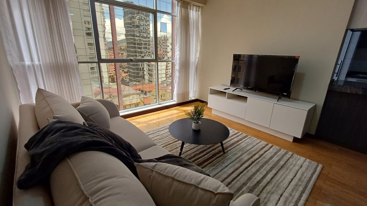 Genieße Licht, Komfort und eine unschlagbare Lage im Herzen der Stadt. Diese moderne Wohnung verfügt über breite Fenster, eine spektakuläre Aussicht und eine privilegierte Lage. Nur wenige Schritte von Botschaften, Unterhaltung, Supermärkten, Krankenhäusern und Fitnessstudios entfernt, mit einfachem Zugang zu jedem Bereich. Es verfügt über schnelles WLAN, eine ausgestattete Küche, einen Smart-TV, ein bequemes Bett, geräumige Schränke und einen Sicherheitsdienst rund um die Uhr. Die perfekte Kombination aus Komfort, Stil und Lage. Buche deinen Aufenthalt!