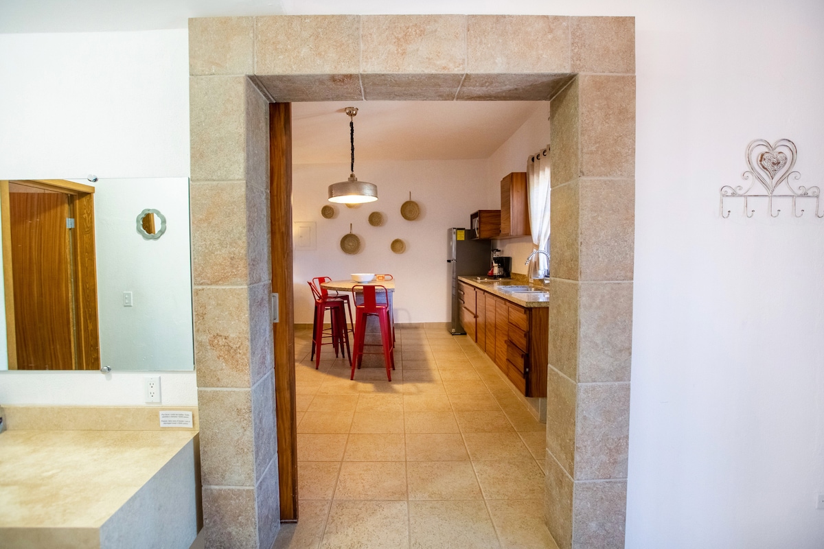 Schönes Designer-Studio in der Innenstadt mit 270 Quadratfuß. 3 Blocks zum Strand Malecon, du kannst Kajaks und Paddelbretter mieten, auf dem Sand chillen oder den Balandra-Strandbus nehmen. Die besten Restaurants sind zu Fuß erreichbar. Gehe ein oder zwei Blocks zu Supermärkten, Mini-Märkten, Museen, Cafés, Bars, Busbahnhöfen und Restaurants. High-Speed-WLAN 6. Voll ausgestattete Küchenzeile. 3-fach gefiltertes Leitungswasser. ⇨Monatlicher Rabatt bei der Buchung berücksichtigt⇦ ⇨Buche noch heute!