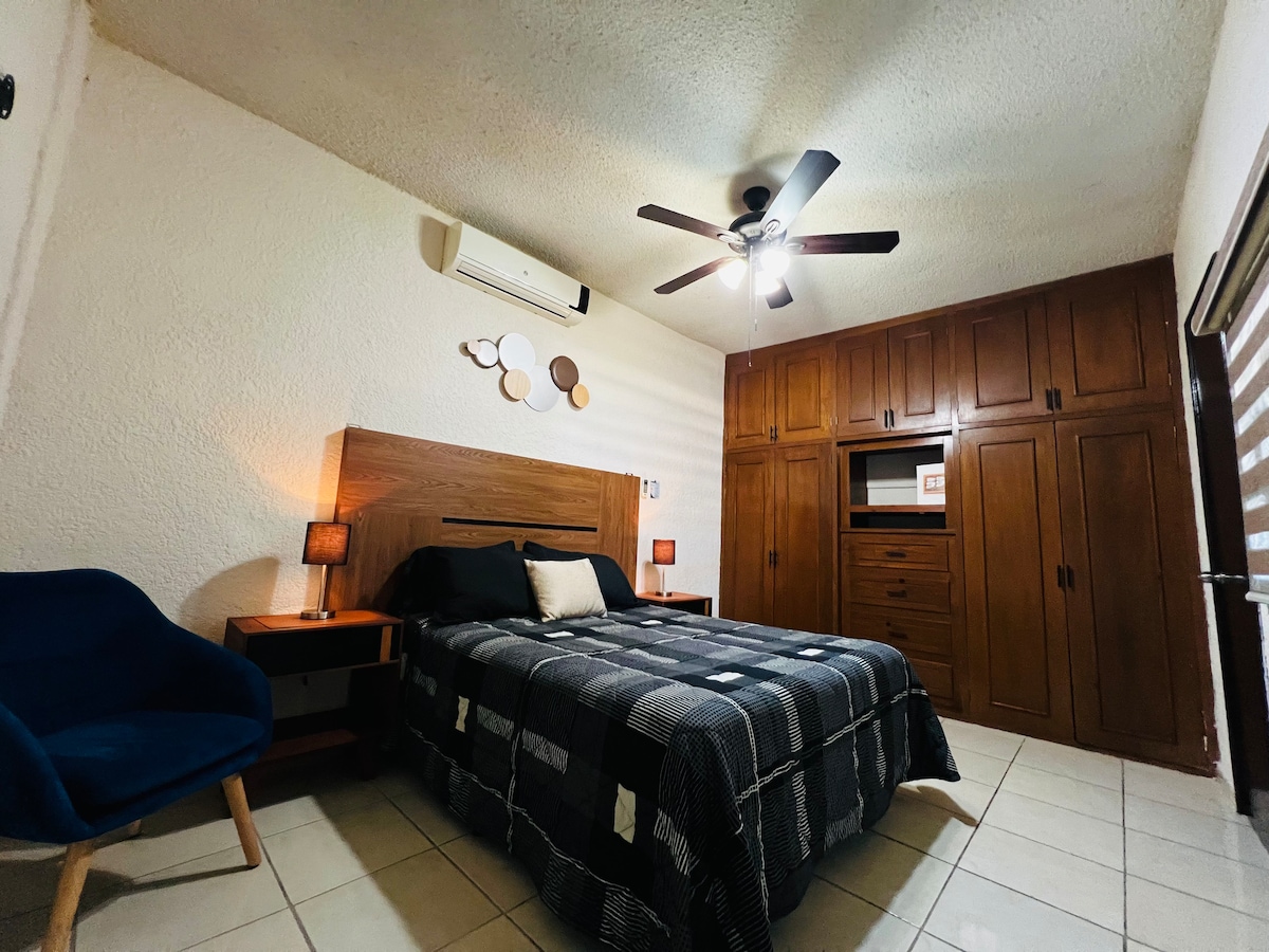 Unsere Wohnung in La Paz, Baja California Sur, erwartet dich, nur wenige Autominuten vom Stadtzentrum und den wichtigsten Sehenswürdigkeiten entfernt. Von hier aus kannst du den Strand und die nahegelegenen Sehenswürdigkeiten bequem erreichen. Darüber hinaus bietet die Wohnung ein ruhiges Ambiente, ideal zum Entspannen oder Arbeiten.