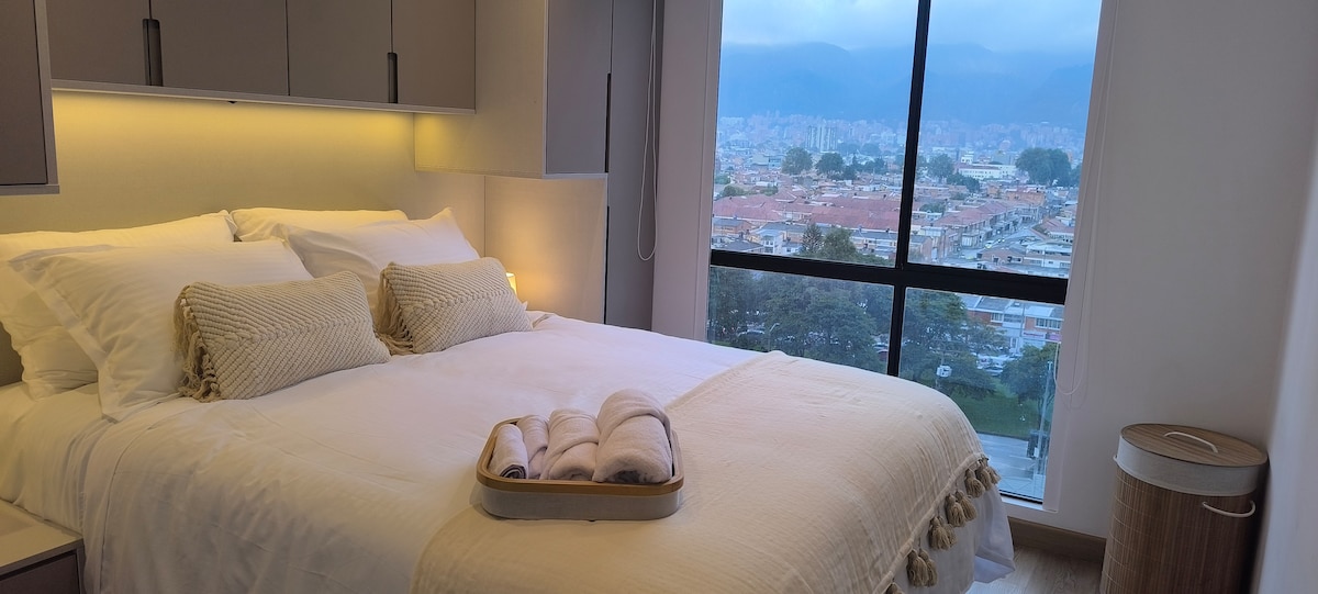 Moderne und komfortable Wohnung mit Dachterrasse mit 360°-Blick auf die Stadt. Perfekt für Paare, Familien, Konzertbesucher, Essen, Kultur oder Sportbegeisterte, Geschäftsreisende und Studenten Das Hotel liegt in Nicolás de Federmán, einem der sichersten und am besten angebundenen Viertel von Bogotá. Nur wenige Schritte vom El Campín Stadion, der Movistar Arena, dem Simón Bolívar Park und der Nationalen Universität entfernt. Günstig in der Nähe des Flughafens, der US-Botschaft, der Zona Rosa, der Einkaufszentren und der Vive Claro Arena