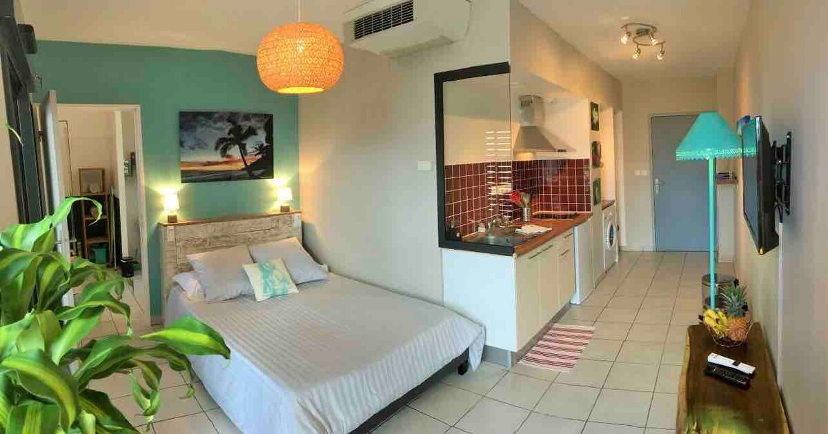 Willkommen bei Zot! ☀️ Verbringen Sie Ihren schönsten Aufenthalt in dieser Wohnung in einer privaten, sicheren Residenz. Im Herzen von Saint-Pierre gelegen, sind Sie in der Nähe aller Annehmlichkeiten und Aktivitäten: Der Markt 🧺 ist 15 Minuten entfernt und der Strand 🏖️ ist 10 Minuten zu Fuß entfernt. Diese Unterkunft ist der ideale Ausgangspunkt, um den wilden Süden zu entdecken: Der Vulkan 🌋 und der Wasserfall Grand Galet 🏞️ sind 1 Stunde entfernt, und der Zirkus von Cilaos ⛰️ ist 1,5 Stunden mit dem Auto entfernt.