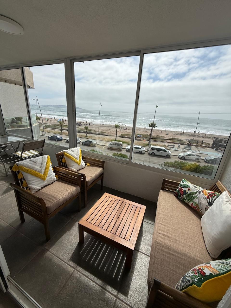 Direkt am Meer, in erster Strandreihe, neben dem Casino Enjoy. Direkter Blick auf das Meer. Gebäude mit allen Annehmlichkeiten, Schwimmbäder, Fitnessraum, Wäscherei, 24-Stunden-Concierge, überdachter Parkplatz. Nur wenige Schritte von den besten Restaurants, Minimärkten, Radwegen und 20 Minuten vom Flughafen Coquimbo entfernt. Voll ausgestattete Wohnung mit 3 Schlafzimmern für 6 Personen. Sie verfügt über Kabel-TV, Internet, eine ausgestattete Küche, einen Whirlpool im Hauptschlafzimmer, Bettwäsche und Handtücher.