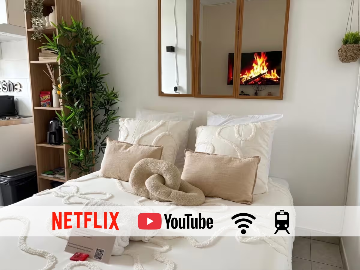 Neues Ferienhaus / Wohnung von 18 m2 mit Balkon. Die komplett neue Wohnung befindet sich in einem gesicherten Gebäude mit Aufzug. 3 Minuten vom Stadtzentrum von La Talaudière (Rathaus, Schule, Geschäfte), 4 Minuten von der Autobahn A72, 7 Minuten vom Einkaufszentrum Steel, 10 Minuten vom Stadtzentrum von Saint-Étienne und 10 Minuten von den Hochschulen und 10 Minuten vom Stade Geoffroy Guichard entfernt. Entspannen Sie sich in dieser ruhigen und eleganten Unterkunft.