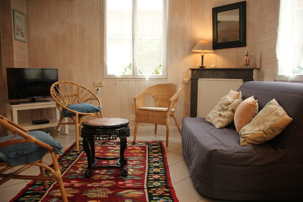 Vermietung in der Nähe des Meeres. Atypische Umgebung am Waldrand, nicht zu übersehen, angrenzend an eine Villa. Komfort & Ruhe werden Sie verführen . Ausgestattete Küche, Sitzecke, Bad mit WC, Schlafsofa, Schlaf 160 mit Memory-Terrasse-Matratze, schattiger Essbereich, Liegestühle. Wohnzimmer NUR für 2 ERWACHSENE- OHNE KINDER Nichtraucher, Haustiere nicht erlaubt Bettwäsche wird zur Verfügung gestellt. (Bettwäsche und Handtücher) Vom 28. Juni bis 30. August 2025: Samstag bis Samstag. Andere Zeiträume: mindestens 2 Tage Zeiträume: mindestens 2 Tage