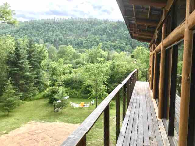 Kleines, modernes, warmes Ferienhaus! Komm und entspanne dich, komme zur Ruhe und erhol dich vollständig! Sei von mehreren Kiefern umgeben. Dieses Ferienhaus kann 2-4 Erwachsene (+1 Kind) begrüßen. Du hast WLAN und einen elektrischen Kamin. Es ist Zeit, sich mit seinem SPA sowie einem Outdoor-GAZÉBO von deinem Alltag zu trennen, um ihn in vollen Zügen zu genießen, während du die schöne Aussicht auf die Berge genießt! Angler, Schneemobilfahrer und Geländefahrzeuge sind der ideale Ort für Naturliebhaber. Motorradfahrer, ihr werdet die Straße genießen! Der Zugang zum Fluss ist 5 Gehminuten entfernt! Jetzt buchen