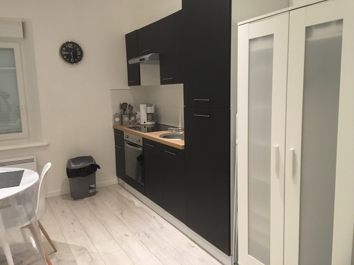 Wohnung im Zentrum von Luxeuil les Bains, Zugang zur Hauptstraße durch gesicherte Tür und privaten Parkplatz mit Ausweisen (Schlüsselbox) Typ F2, bestehend aus einem Wohnzimmer mit Einbauküche, einem Wohnzimmer mit TV, einem Schlafsofa und Zugang zu einer Terrasse. Ein großes Badezimmer mit ebenerdiger Dusche, ein großer Kleiderschrank im Flur und ein großes Schlafzimmer mit einem Kleiderschrank Alle Geschäfte in unmittelbarer Nähe (Bäckerei, Restaurant, Lebensmittel)