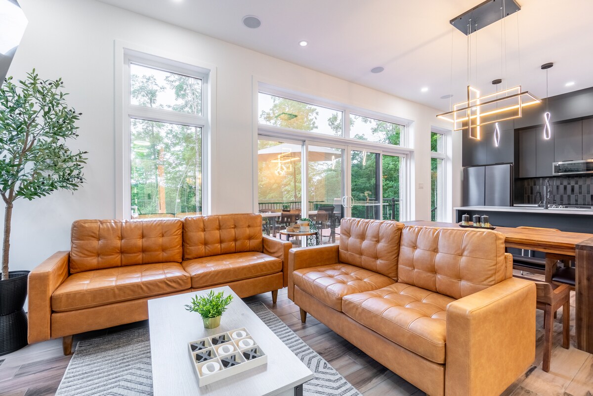 Willkommen im Forest Hideaway ♥ Das in Brownsburg-Chatham gelegene Forest Hideaway bietet dir ein idyllisches Naturschutzgebiet inmitten der Flora und Fauna! Warte nicht länger und regiere dich im Wald, um deinen inneren Frieden zu finden... ➳ Maximal 6 Erwachsene sind erforderlich ➳ Hübsche Terrasse mit Essbereich im Freien ➳ Zuverlässiges WLAN mit ausgestattetem Büroraum ➳ Gaskamin & Feuerbereich im Freien. Ladestation der➳ Stufe 2 für dein Elektroauto ➳ Spa und Sauna, jedes privat und ganzjährig geöffnet!
