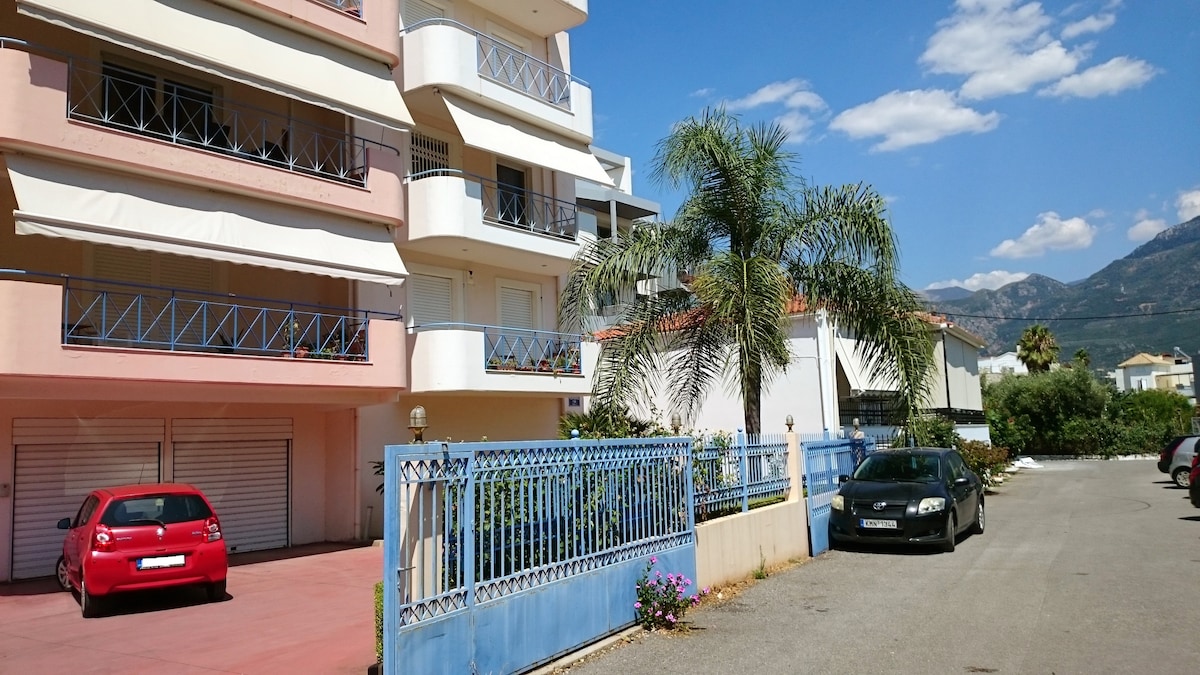 Unsere Wohnungen sind in Plaka, dem schönen und malerischen Hafen des historischen und traditionellen Dorfes Leonidion, verschlossen. Nur 50 Meter vom Meer entfernt! Die Wohnung „Votsalo“ ist 50 Quadratmeter groß. Sie befindet sich im ersten Stock des Gebäudes (es gibt eine spezielle Hubmaschine – Stuhl für Menschen mit besonderen Bedürfnissen oder ältere Menschen). Es ist schallisoliert und wärmeisoliert und verfügt über 2 Schlafzimmer, ein Wohnzimmer, eine Küche, ein Badezimmer, 2 Veranden und eine Terrasse mit unglaublicher Aussicht! Entspann dich, genieße & erkunde!