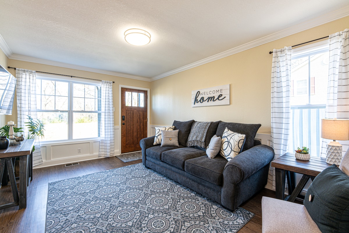 ✨🤎 Beautifully renovated & so cozy! 🤎✨Take it easy at this tranquil getaway in Clinton, TN. Perfect for families, groups, or even a solo work trip, this adorable home is minutes from the Clinch River, Norris Lake, Oak Ridge, Knoxville, and so much more that beautiful East Tennessee has to offer. Enjoy the flagstone fire pit outside with loved ones, or relax inside in this beautiful, detail-oriented home that comes fully stocked with lots of amenities!