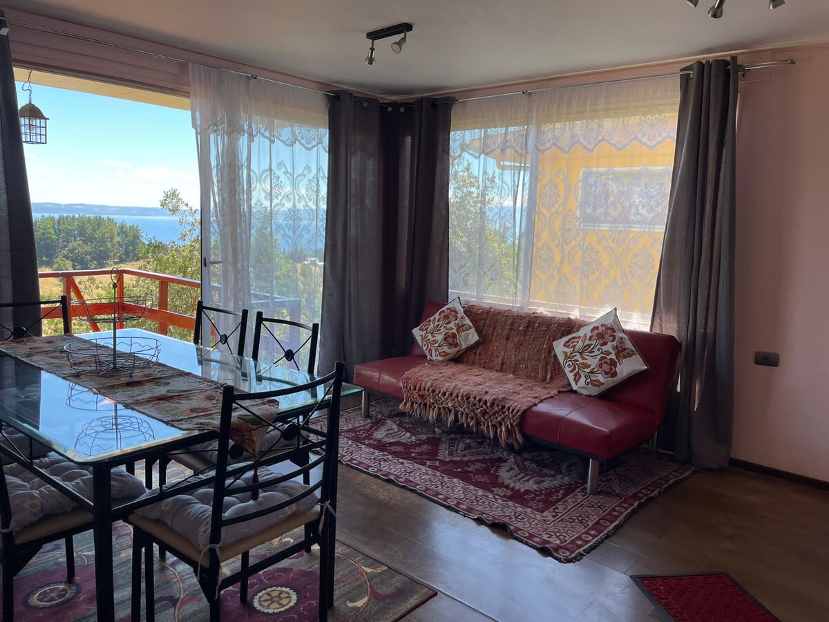 Haus mit schönem Blick auf den Lago Ranco. Ideal zum Ausruhen und um einen schönen Urlaub zu genießen. Es verfügt über einen Tank mit Gaskessel, der zusätzlich bezahlt wird, drei Schlafzimmer, eine Einzelküche, Kabel-TV, einen Pelletofen und einen Parkplatz. Die Hütte Mirador hat Blick auf den See, aber keinen direkten Zugang zum See.
