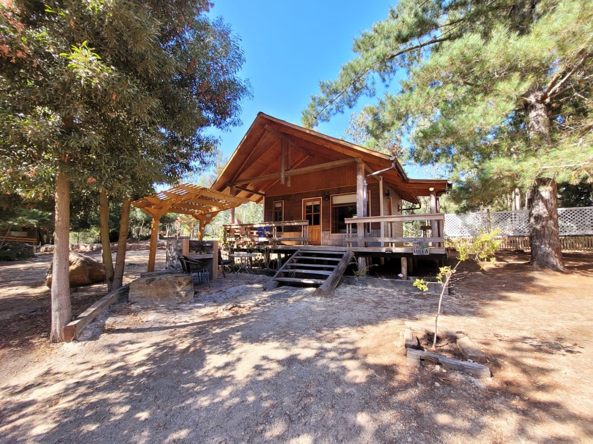 Lake Vichuquén Gipfel Hütte mit einer schönen Aussicht. 5 Minuten von Playa Paula (Seeboulevard, Kunsthandwerk und mehr) und 20 Minuten von den Stränden Llico, Lipimavida, Duao und Iloca entfernt🌊. Entspanne dich im Gemeinschaftspool für zwei Kabinen🏊♂️