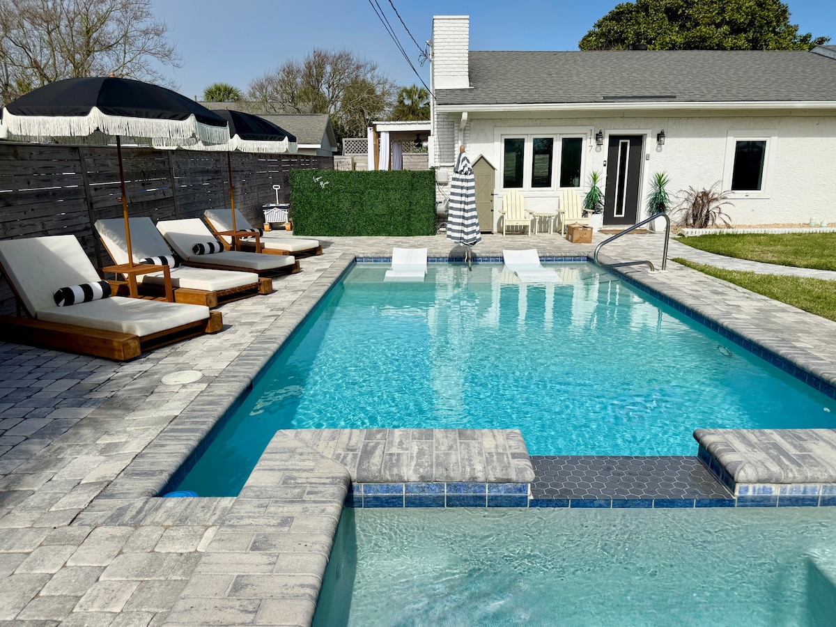 1 Gehminute zum Strand| Pool + Spa| Haustiere| Spiele| Schlafplätze für 14