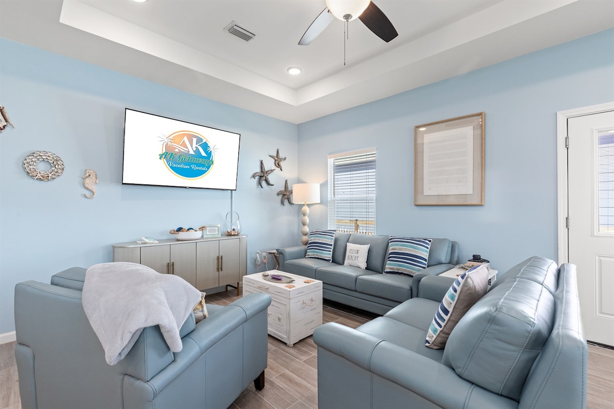 Willkommen in diesem entspannenden Küstenurlaub. Du wirst den Pool, die überdachte Terrasse zum Grillen und den Sonnenuntergang auf der Terrasse im Obergeschoss genießen. Das Haus bietet Platz für neun Personen, verfügt über eine brandneue Küche, ein Familienzimmer zum Entspannen und blitzschnelles Internet zum Arbeiten oder Streamen von Filmen. Du bist nur zehn Gehminuten vom Strand und eine kurze Fahrt von 30A und Pier Park entfernt. Wir sind hundefreundlich und zahlen eine Gebühr von 170 $ für Haustiere. Maximal drei Hunde. Poolheizung ist für 40 $/Tag verfügbar. Details unten.