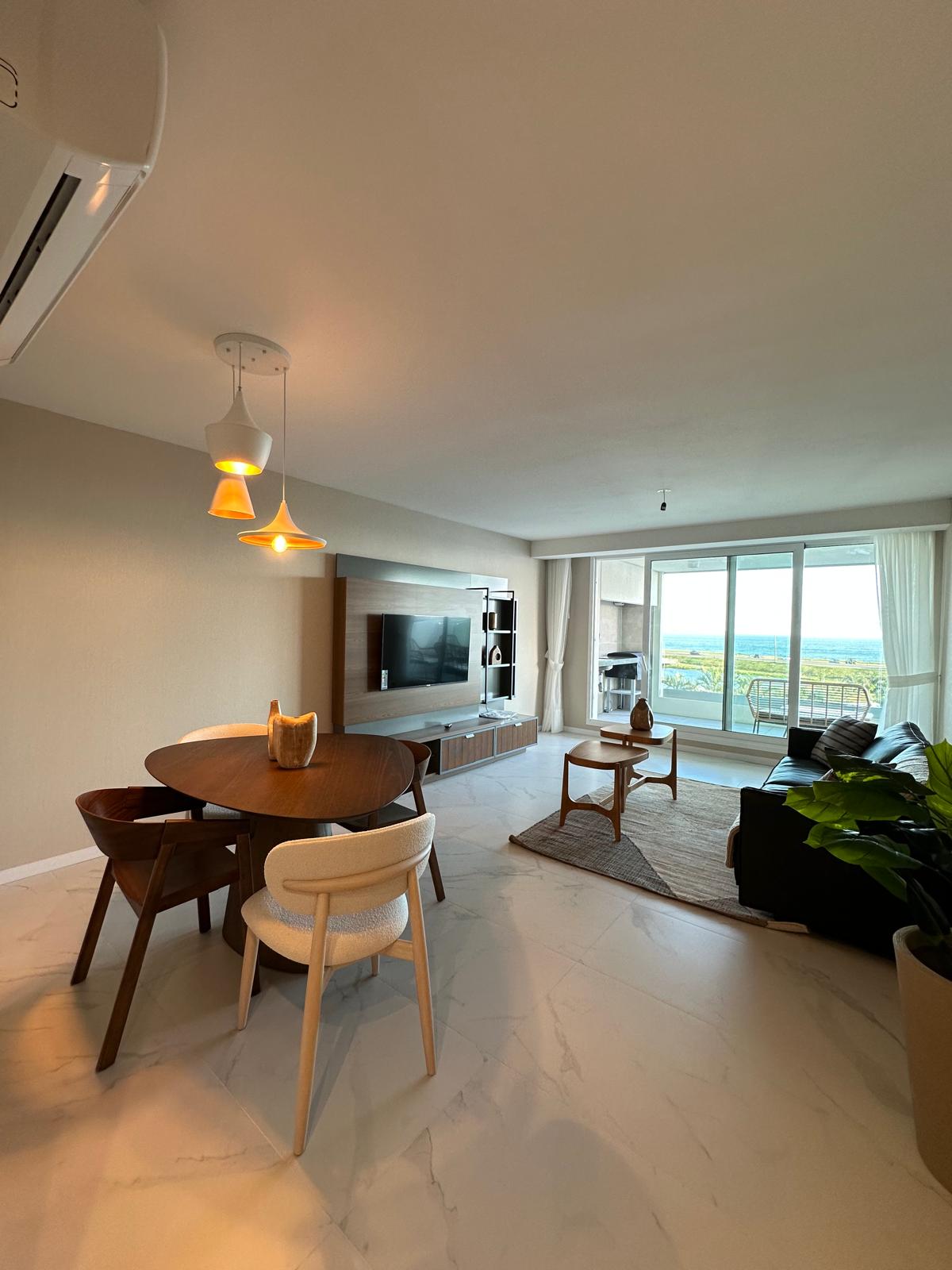 Schöne Wohnung am Meer, Parada 36 de Playa Mansa. Hell und komfortabel, mit Terrasse, privatem Grill, direktem Meerblick, Waschmaschine und Trockner, Bettwäsche, Handtüchern und überdachter Garage. Es verfügt über ein Schlafzimmer und ein halbes mit einem Etagenbett. Das Gebäude bietet tägliche Zimmerreinigung (ohne Geschirr), beheizten Innenpool, saisonalen Außenpool, Sauna, Fitnessraum, Spielzimmer, Grill (gegen Gebühr), 24-Stunden-Rezeption und Strandservice.