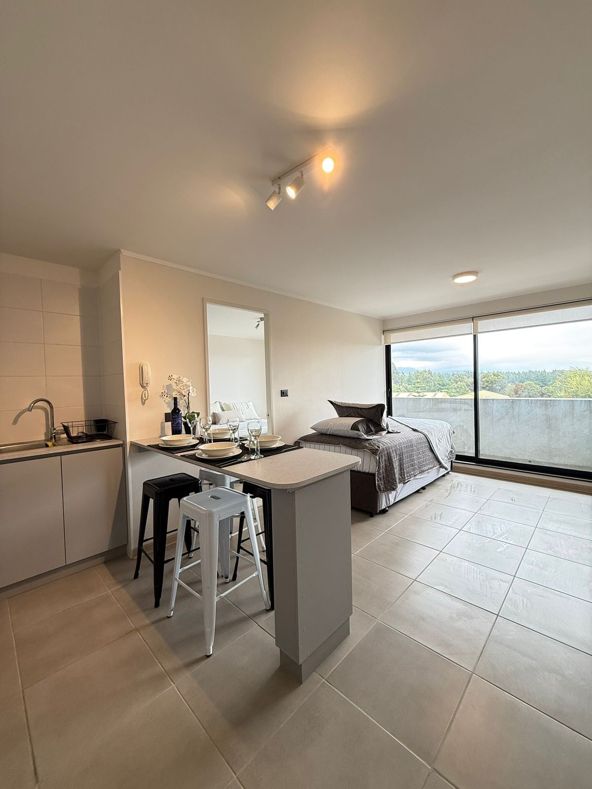 Moderne 1-Zimmer-Wohnung im 15. Stock mit Panoramablick auf Concepción und einzigartigen Sonnenuntergängen🌇. Heller und gemütlicher Raum, ideal zum Entspannen, Arbeiten oder für längere Aufenthalte. Verfügt über ein komfortables Wohnzimmer🛋️, eine voll ausgestattete Küche👩🍳, schnelles WLAN🛜, einen Fernseher mit Netflix/Disney+ 📺und ein Doppelbett🛏️. Zentral gelegen, nur wenige Schritte von der Innenstadt, Universitäten, Restaurants und den öffentlichen Verkehrsmitteln entfernt🚍. 🔔 Automatische Rabatte ab 2 Nächten 😌