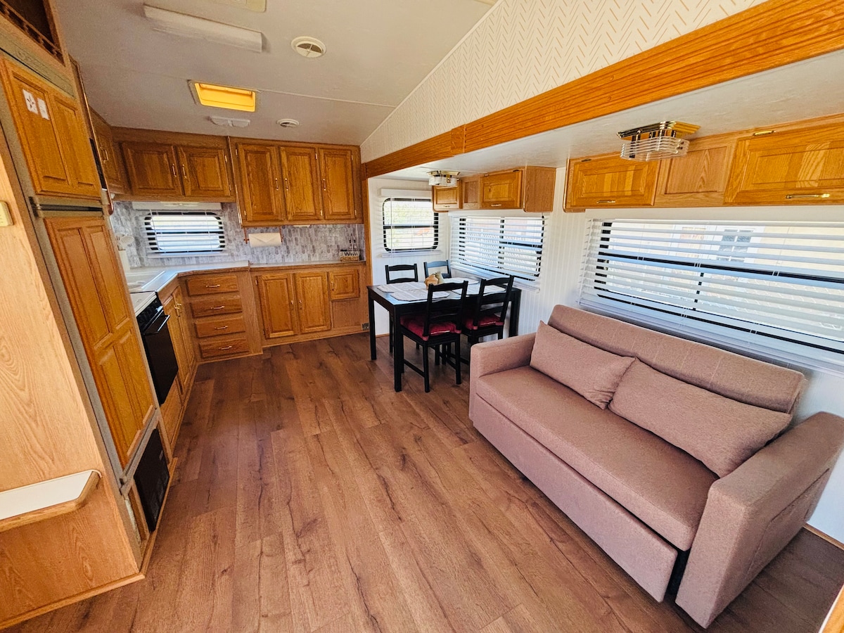 Willkommen in der Gold Mine Cabin, einer 1928 erbauten Blockhütte, die sorgfältig erhalten wurde. Wolltest du schon immer in einer rustikalen Hütte übernachten, aber dich auch glamourös und luxuriös fühlen? Such nicht weiter. Metzgerblock-Küchentheke mit einem Bauernhaus-Waschbecken, durchgehende Gewölbedecken, Luxus-Matratze, ausziehbare Queensize-Bettcouch, 70-Zoll-Projektorleinwand, Klimaanlage & Heizung Mini-Splits und eine Dusche groß genug für eine Party. Wenn du die Dinge langsamer angehen und alles historische Julian genießen möchtest, hast du die Unterkunft gefunden.