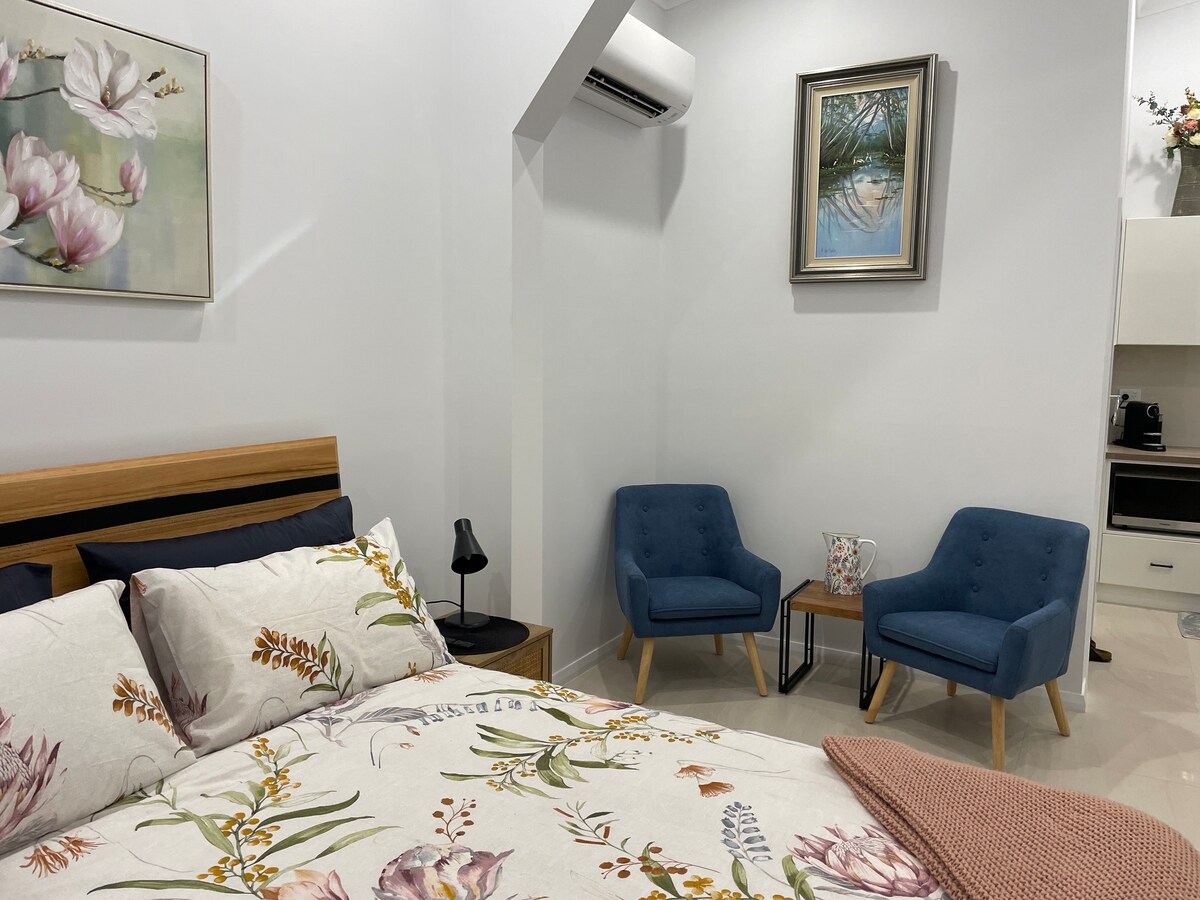 Relax and unwind in this spacious and serene space surrounded by lush gardens. This large room decorated in tropical style has a private bathroom and deck with simple cooking facilities. Set on a 5 acre block in Humpty Doo this self contained accommodation is at the end of a cul de sac just minutes from the Humpty Doo hotel and shopping precinct. Whether you’re having a holiday, relocating for work, or simply looking for a bush escape you will find everything you need for a comfortable stay