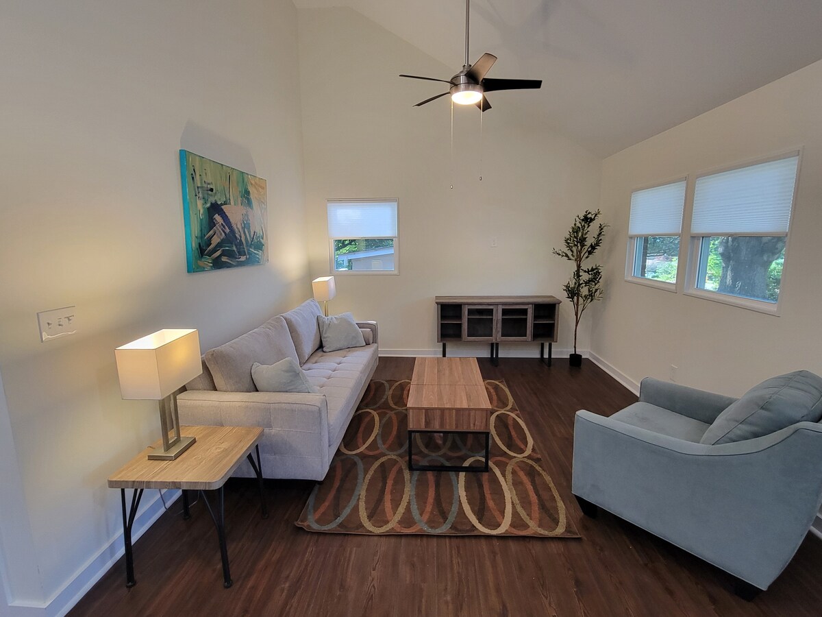 Genieße einfachen Zugang zu allem von dieser perfekt gelegenen Eigentumswohnung aus! Benny's Bungalow in Five Points, Hyde Park ist renoviert, gemütlich und entspannend! Die Wohnung ist großzügig und gleichzeitig kompakt, mit Fernsehern, Deckenventilatoren, verspiegelten Schränken, Queensize-Bett im Gästezimmer, Kingsize-Bett und Schreibtisch im Hauptschlafzimmer. Heller und offener Wohnbereich mit komplett renoviertem Bad und Küche macht das Leben einfach! Genieße den ruhigen Außenbereich mit Sitzgelegenheiten und zu Fuß erreichbaren Restaurants, Bars und Brauereien! Haustierfreundlich!