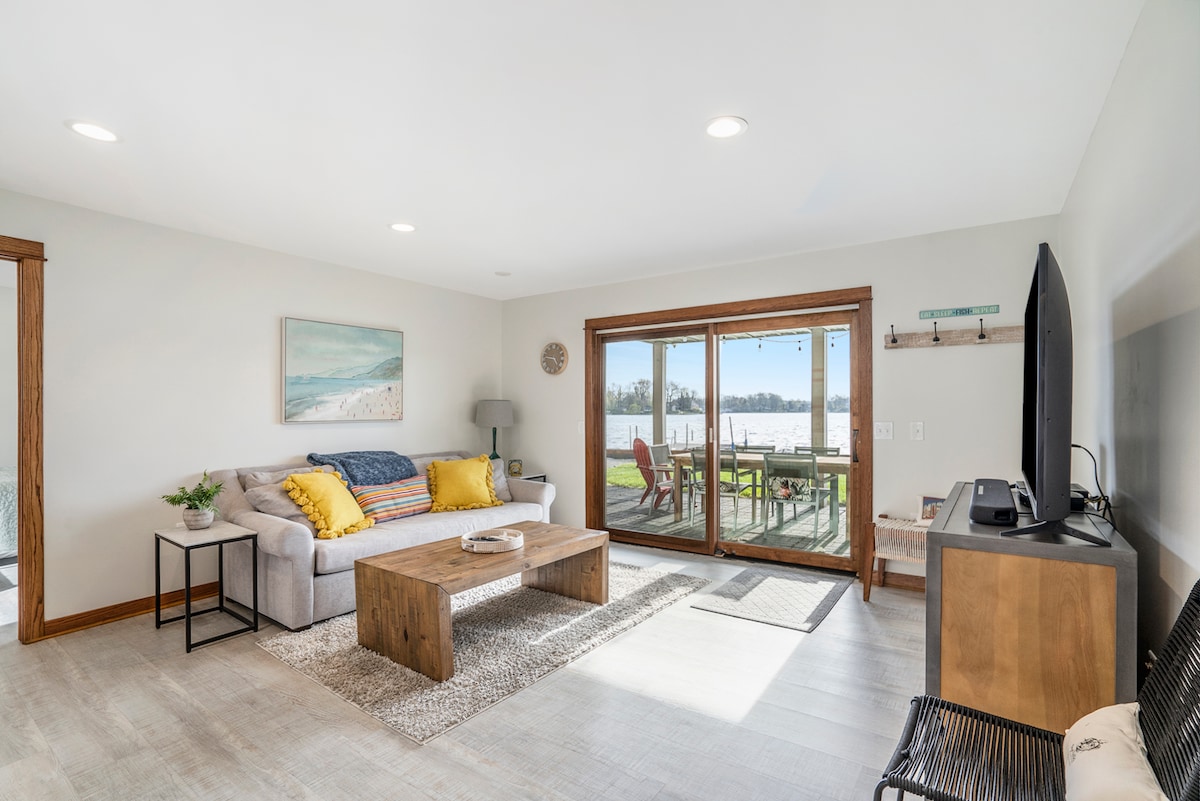 Willkommen bei Lake Life on Pine. Bei jedem Aufenthalt inbegriffen: - 50 Fuß Seefront (mit Schwesterhaus geteilt) - Dock für Seezugang und Angeln (mit Schwesterhaus geteilt) - Balkon mit Blick auf den Sonnenaufgang und herrlichem Blick auf den See - Haustierfreundlich (vollständig eingezäunter Hof) - 1 Min. zur Bootsrampe - Paddelboot, Kajaks, Angelausrüstung - Spielzimmer - Grill. - Feuerstellen im Freien - Boots-/Anhängerparkplatz (im Freien) - 2 Minuten zum Lebensmittelgeschäft - 1 Queensize-Bett, 2 Einzelbetten + Ausziehbetten - Jet-Sky/Bootsverleih (gegen Gebühr)