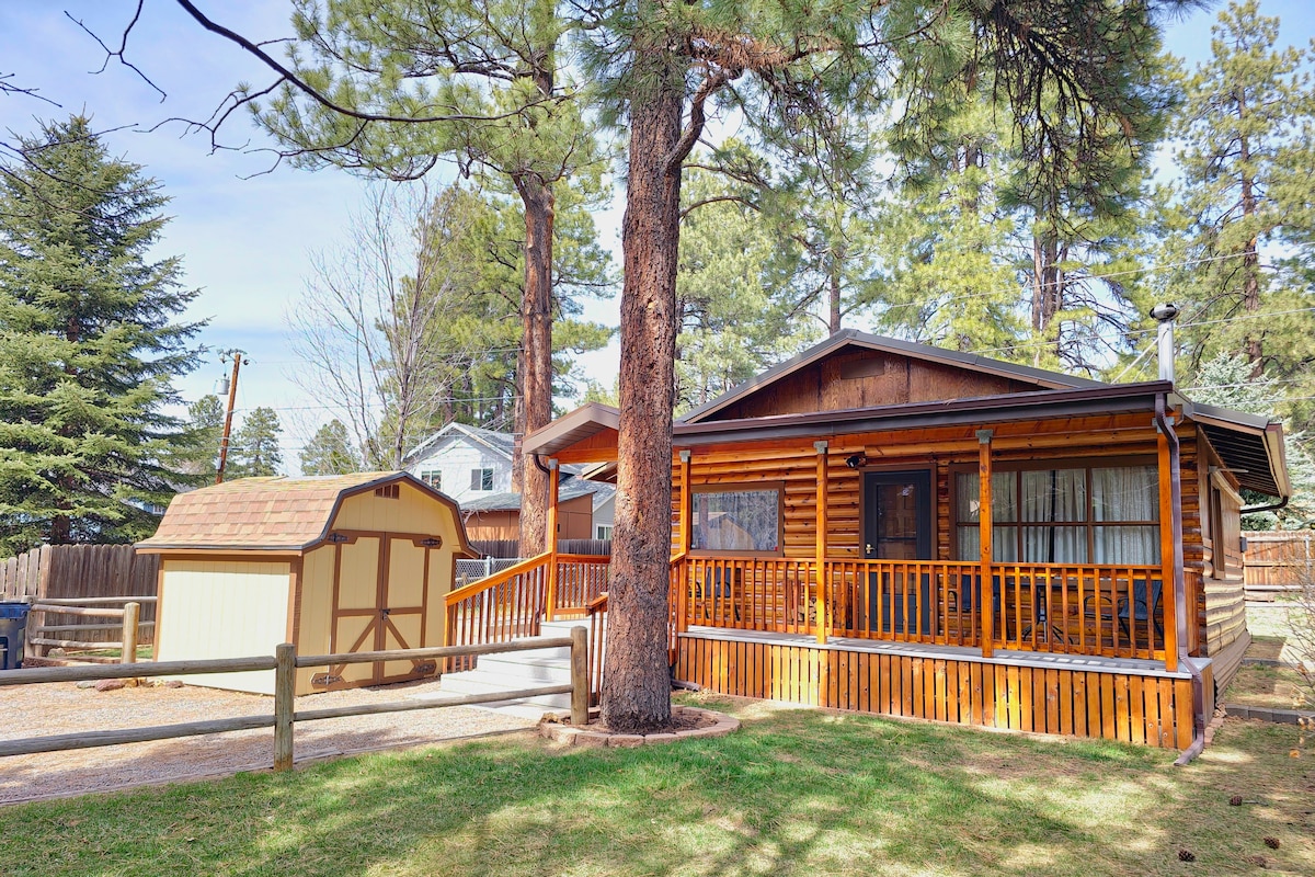 Obwohl es technisch gesehen kein Baumhaus ist, ist diese Blockhütte 79 Stufen nach oben, befindet sich über dem Erdgeschoss und ist von Ponderosa-Kiefern umgeben! Sobald du in diesem gemütlichen und ruhigen Zuhause bist, wirst du dich wie in deinem eigenen privaten Baumhaus fühlen. Im Kachina Village, nur 8 Meilen südlich der Innenstadt von Flagstaff gelegen, kannst du den dunklen Himmel und die ruhigen Abende genießen, während du in der Nähe aller Sehenswürdigkeiten von Flagstaff bist. Bitte beachte, dass du alle 79 Stufen hinaufsteigen und eine Fußgängerbrücke über Pumphouse Wash überqueren musst.