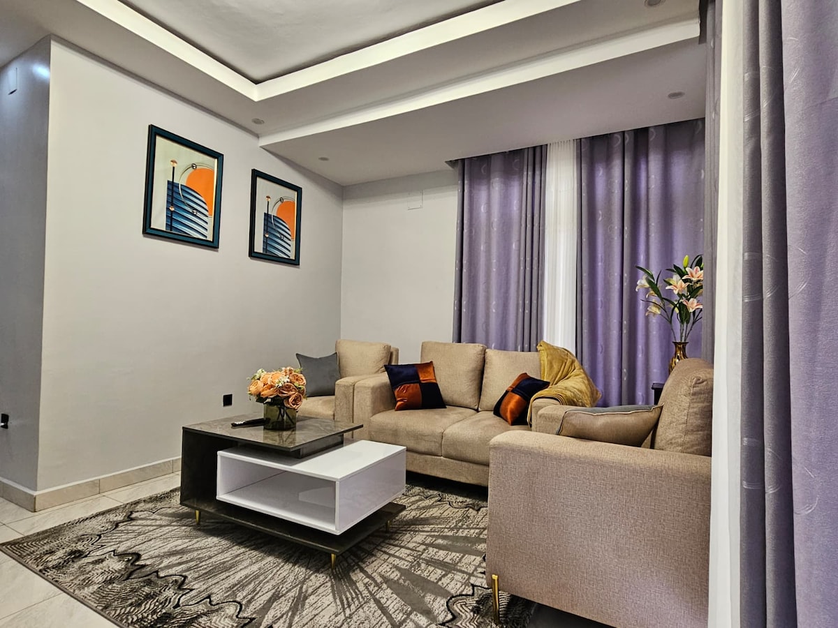 Willkommen im Royal Ridge Apartment Entdecke eine Mischung aus modernem Komfort und königlichem Charme im Royal Ridge Apartment, ideal gelegen in Nyarutarama. Egal, ob du geschäftlich oder privat unterwegs bist, diese Wohnung bietet einen sicheren, stilvollen und entspannenden Rückzugsort, nur wenige Minuten von den Highlights der Stadt entfernt. Genieße einen gemütlichen Wohnbereich, eine komfortable und voll ausgestattete Küche, damit du dich wie zuhause fühlst. Tritt nach draußen und du bist in der Nähe von Restaurants, Supermärkten, mit dem Kigali Convention Center nur 2 km entfernt.