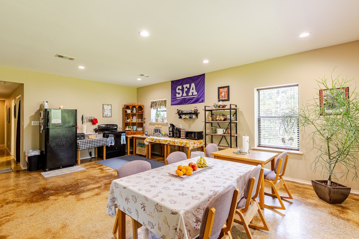 Entfliehe in die Natur in unserem kleinen Haus mit 1 Bett und 1 Bad in der Nähe von Nacogdoches. Dieser haustierfreundliche Rückzugsort bietet eine friedliche Mischung aus modernem Komfort und rustikalem Charme, nur 9 Meilen von der Innenstadt und 11 Meilen vom SFA-Campus entfernt. Genieße in absoluter Abgeschiedenheit absolute Privatsphäre inmitten von Natur und Tierwelt. Die Straße nach Nacogdoches ist bis auf die erste Meile, wo du eine Schotterstraße hinunterfährst, die sich durch das Herz der Pinienwälder schlängelt, hauptsächlich gepflastert. Schlafplätze für 4 Personen mit dem großen Futon im Wohnzimmer.